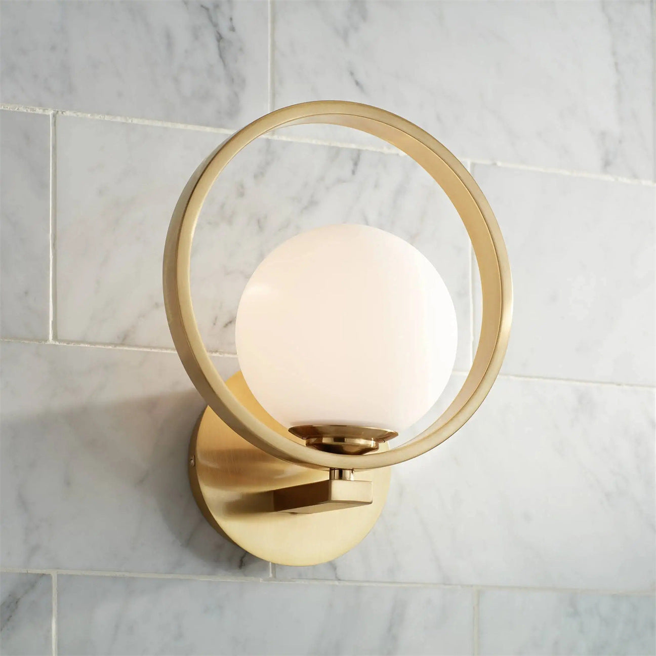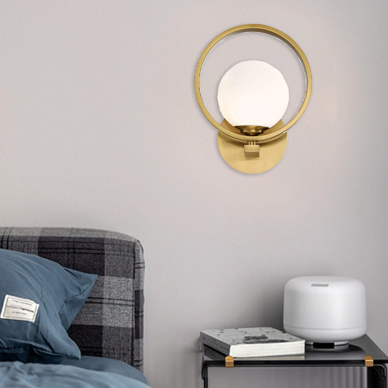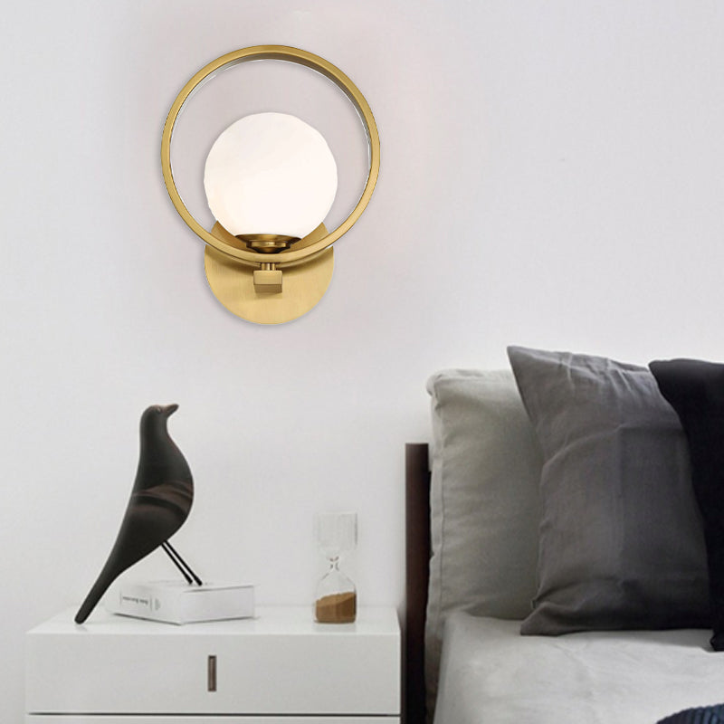 Contemporary Scandinavian Round Copper Glass 1-Light Wall Sconce Lamp For Living Room
