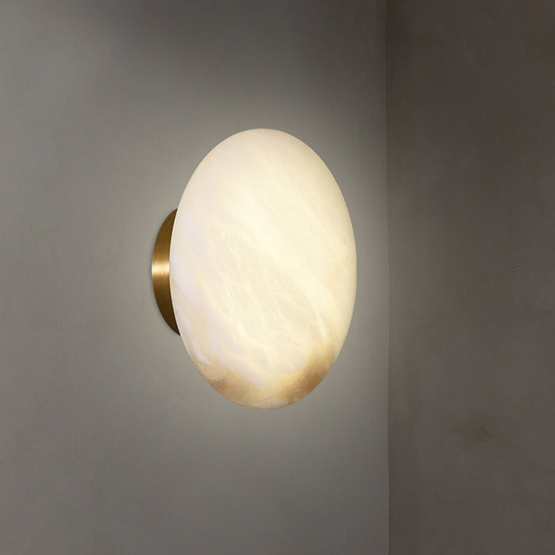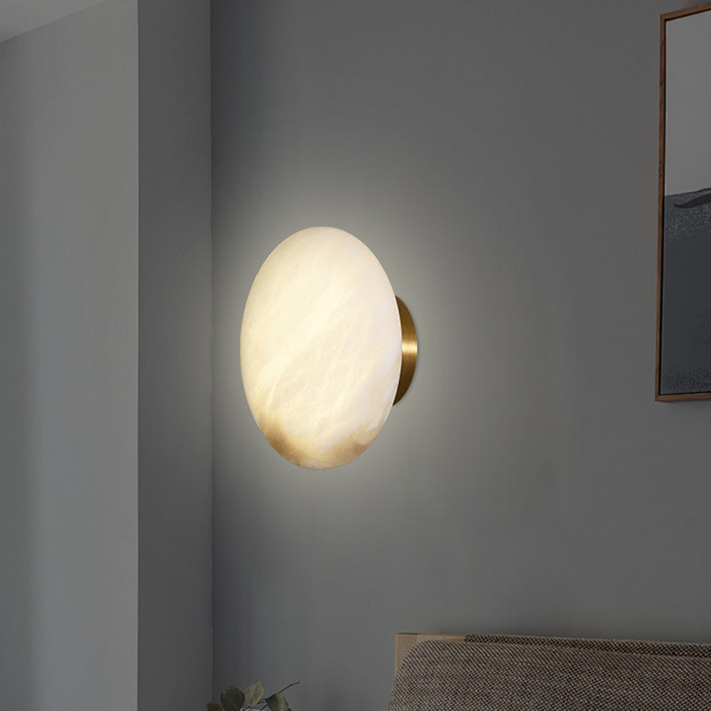 Contemporary Scandinavian Round Copper Marble 1-Light Wall Sconce Lamp For Bedroom