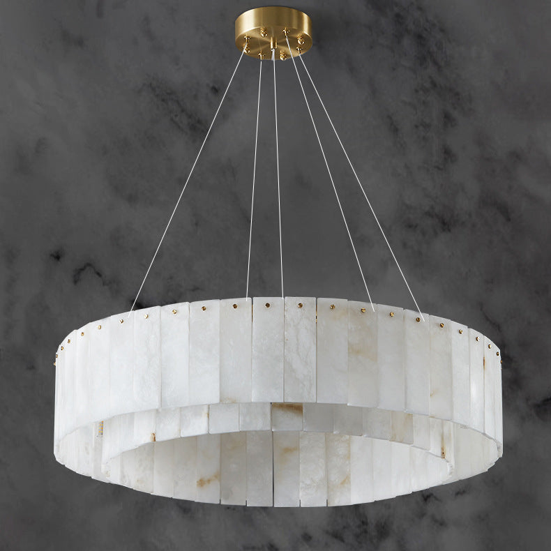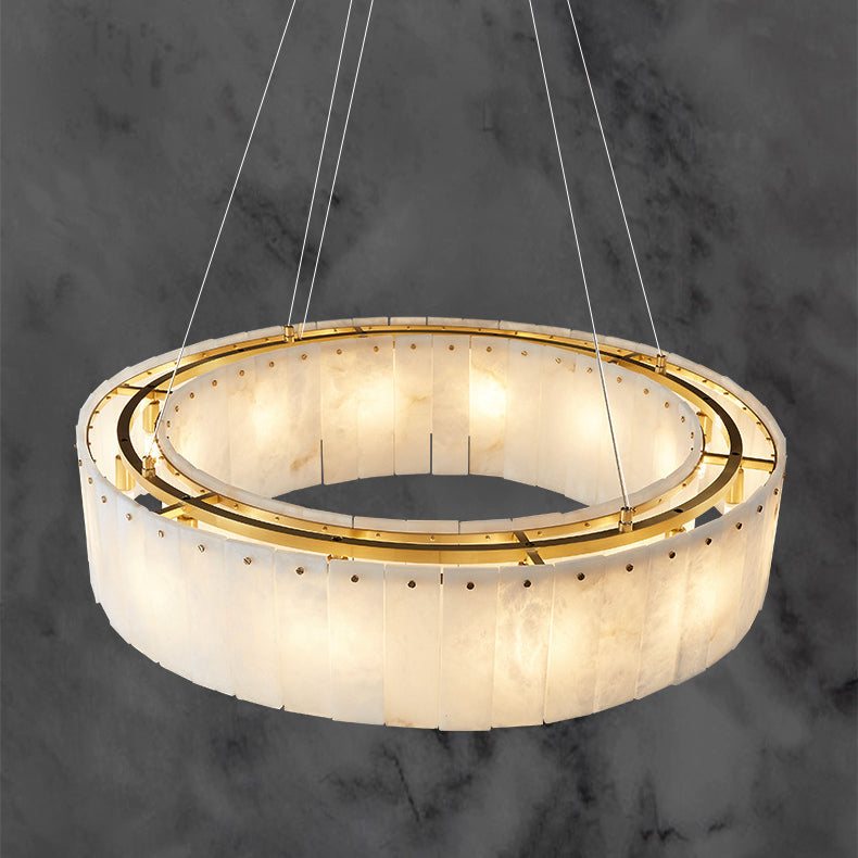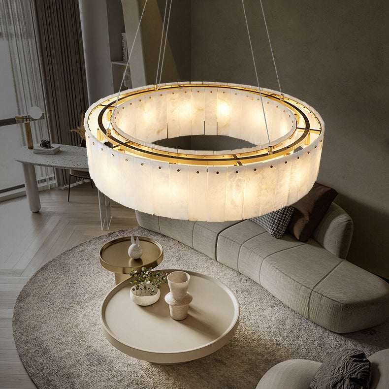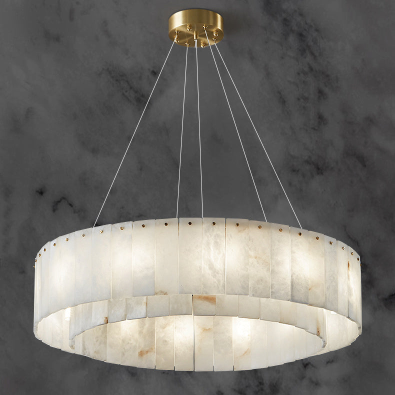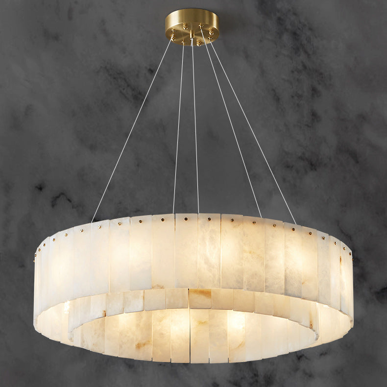 Contemporary Scandinavian Round Copper Stone 8/12/14 Light Chandelier For Living Room