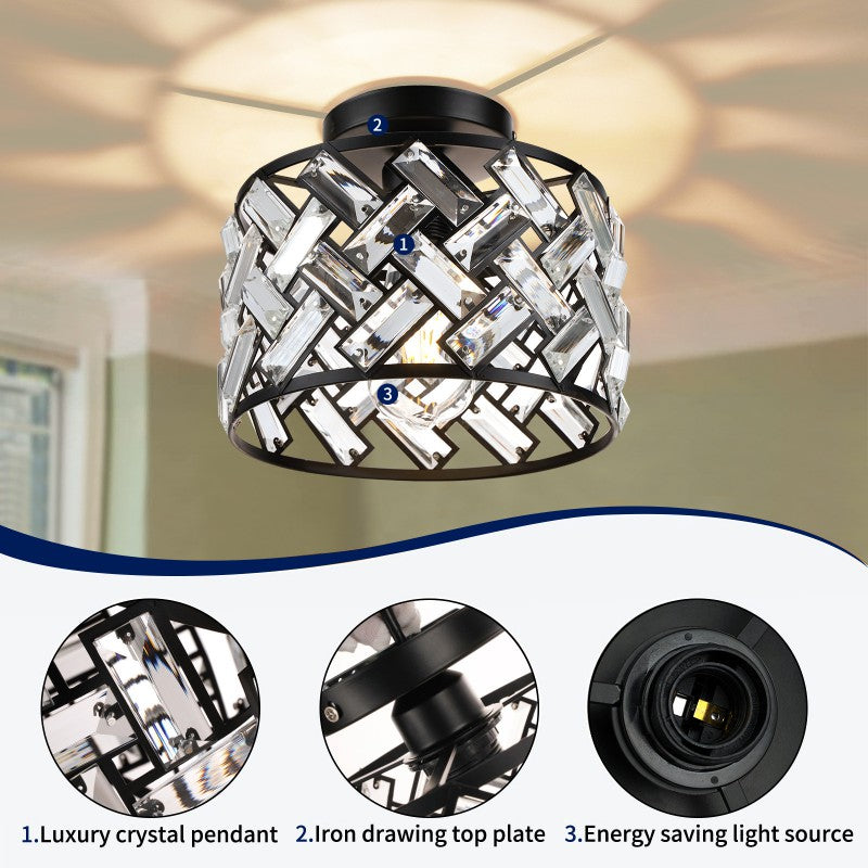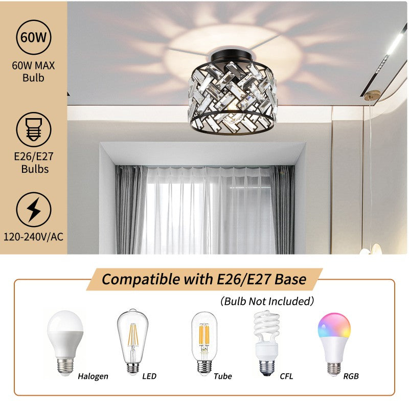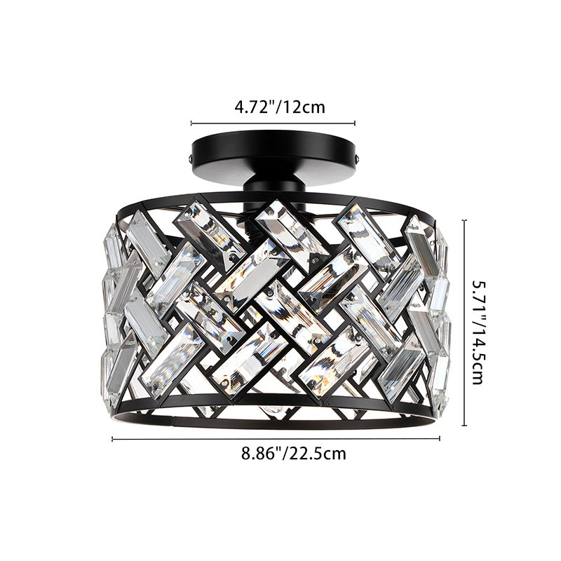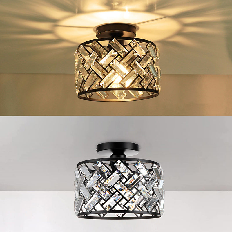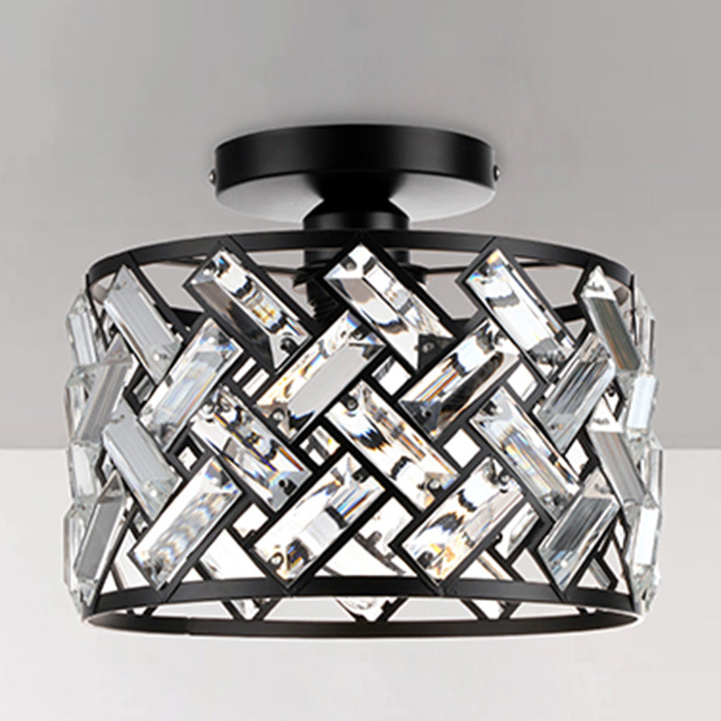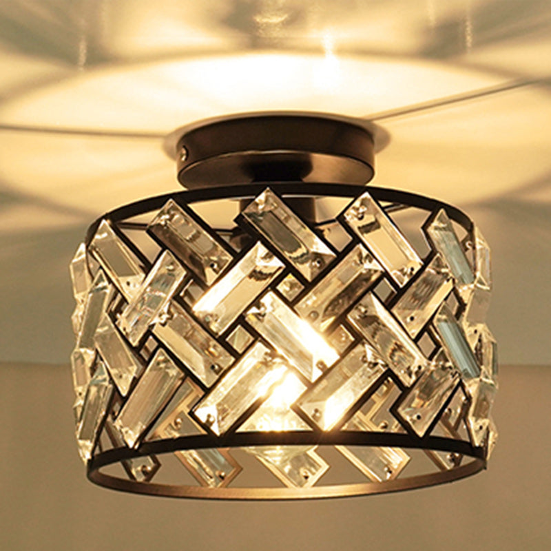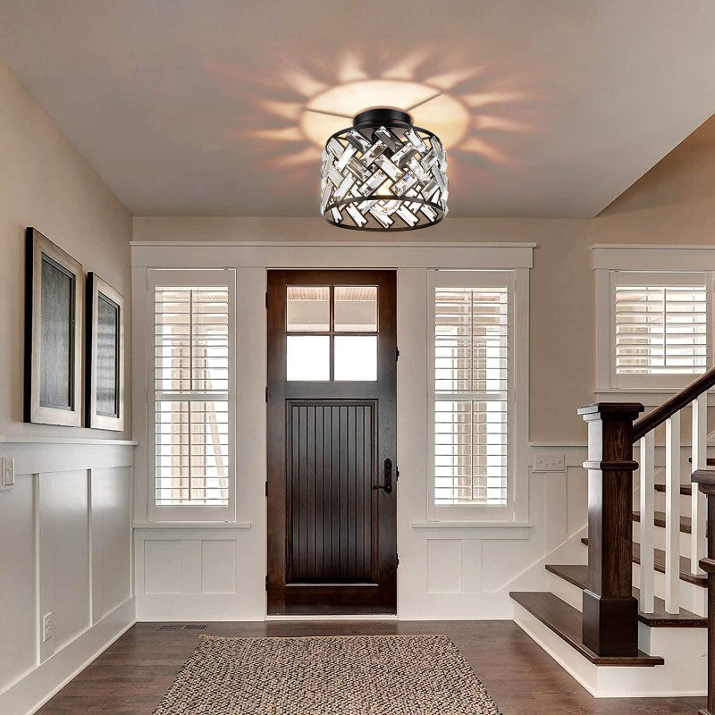 Contemporary Scandinavian Round Crystal Aluminum 1-Light Semi-Flush Mount Ceiling Light For Hallway