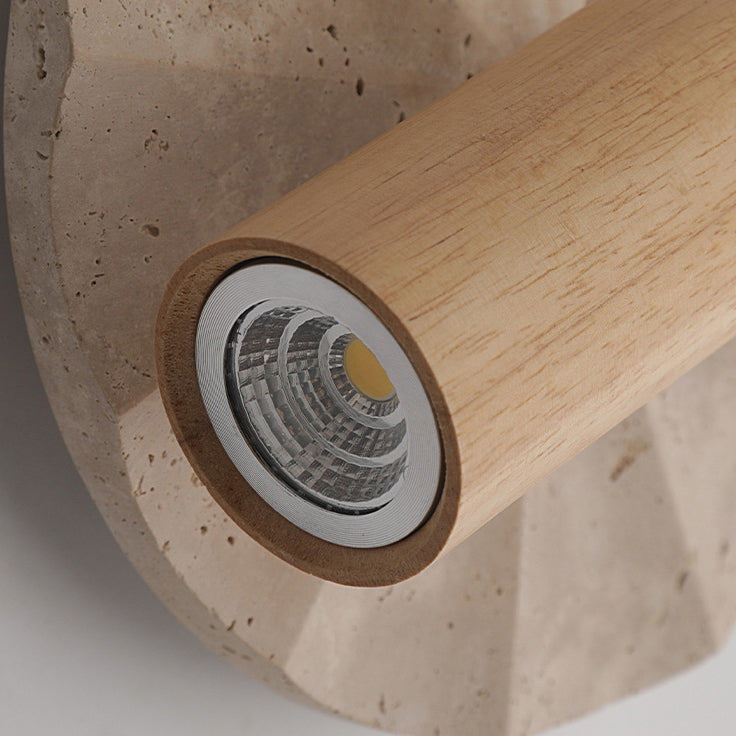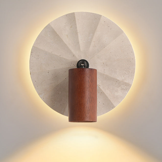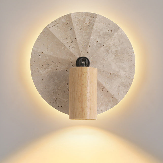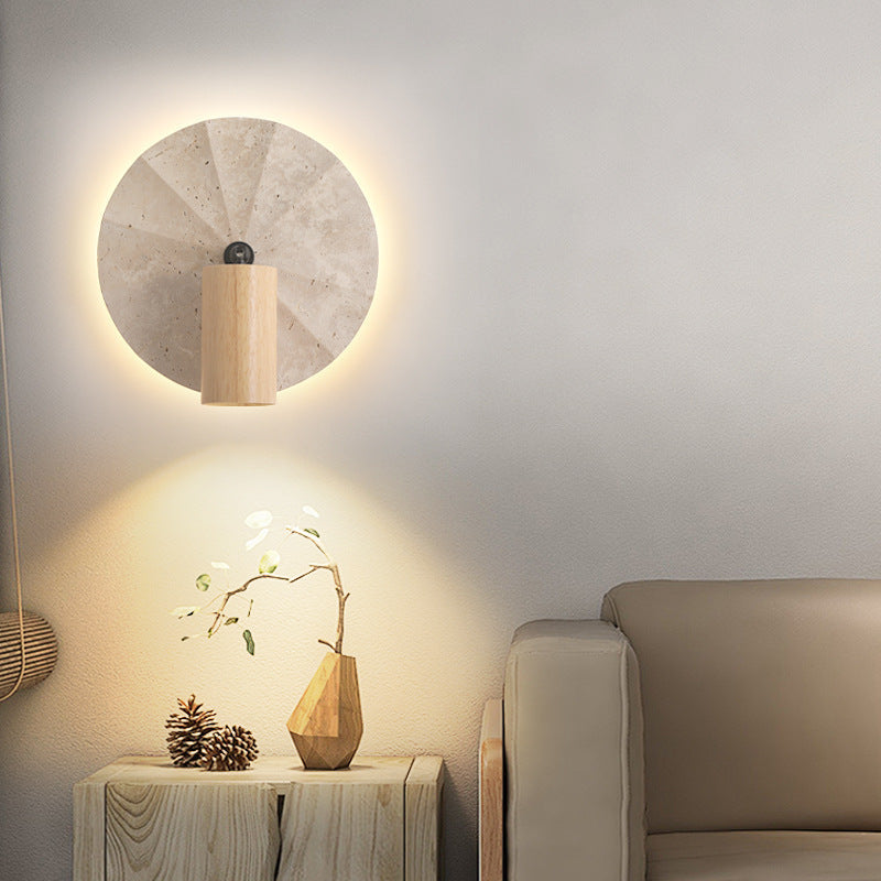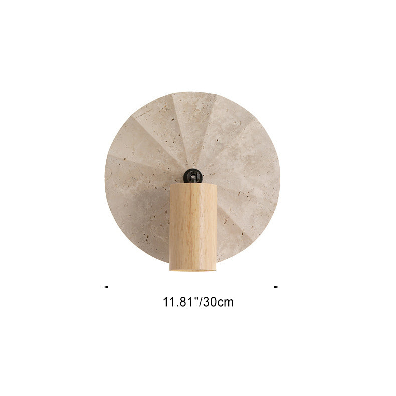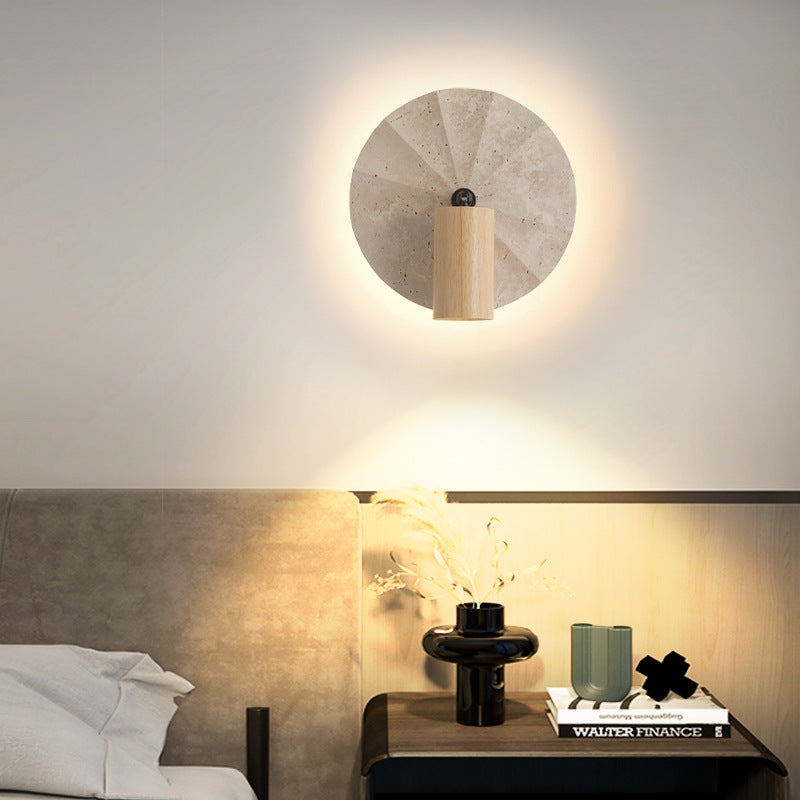 Contemporary Scandinavian Round Cylinder Yellow Travertine Wood 1-Light Wall Sconce Lamp For Bedroom