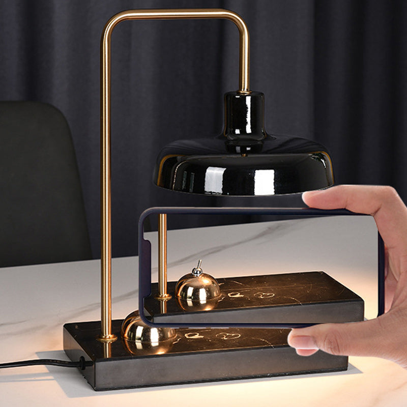 Contemporary Scandinavian Round Disc Rectangular Base Marble Hardware 1-Light Melting Wax Table Lamp For Bedroom