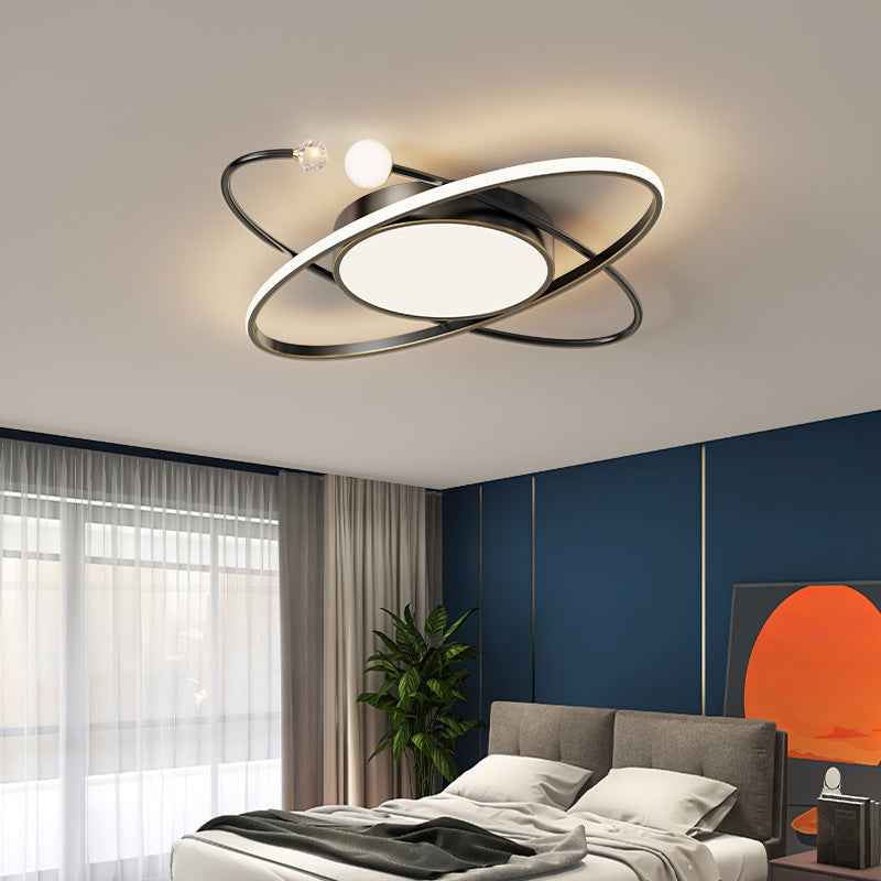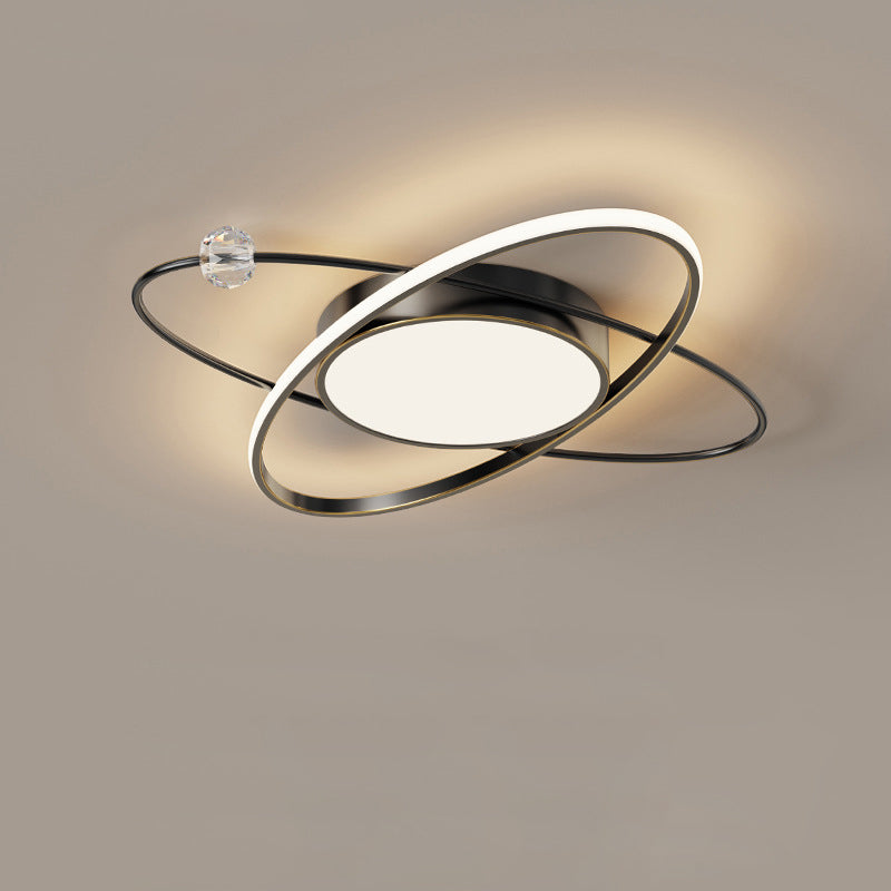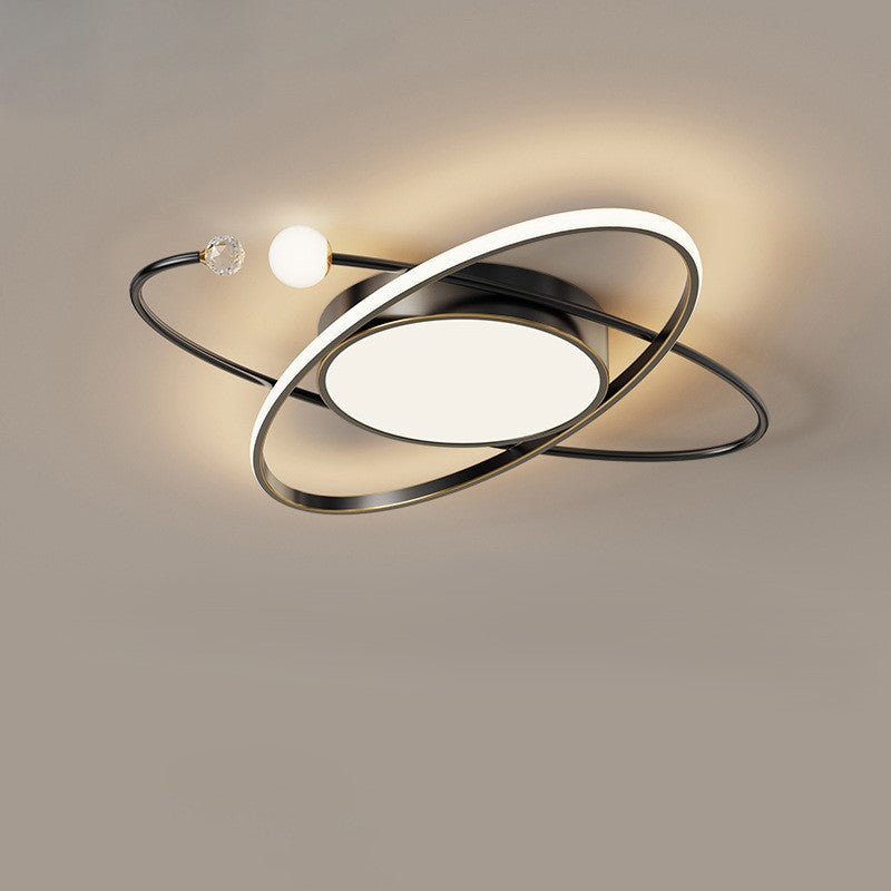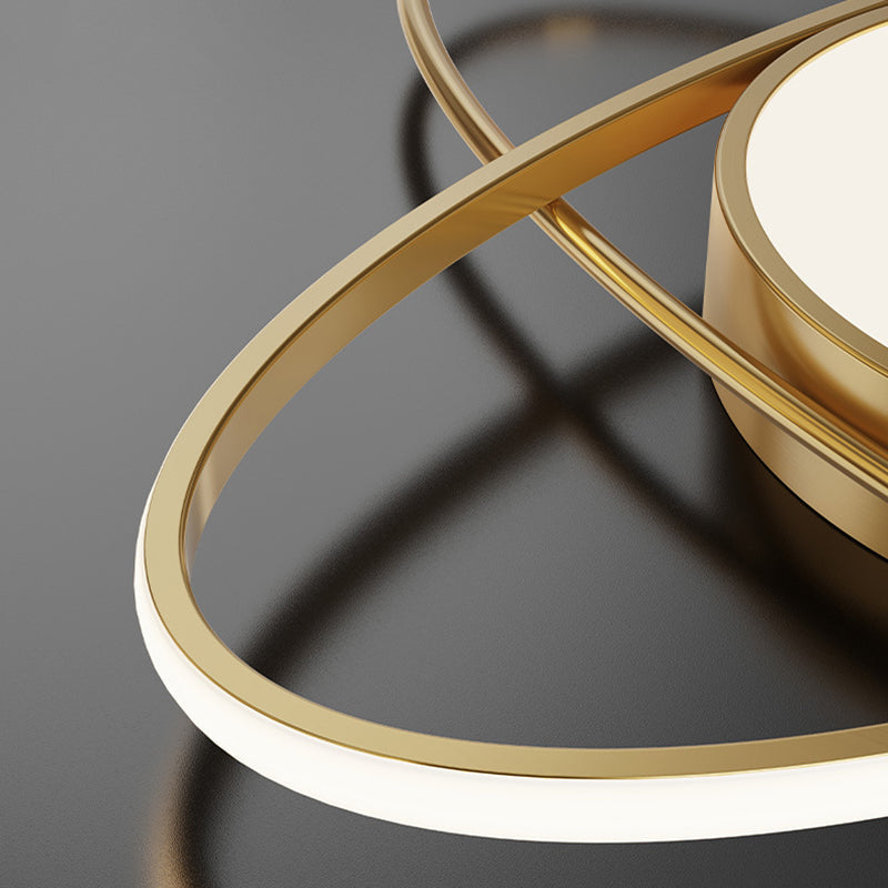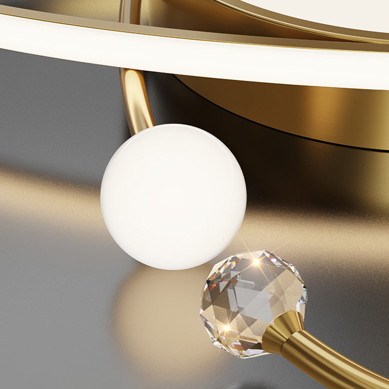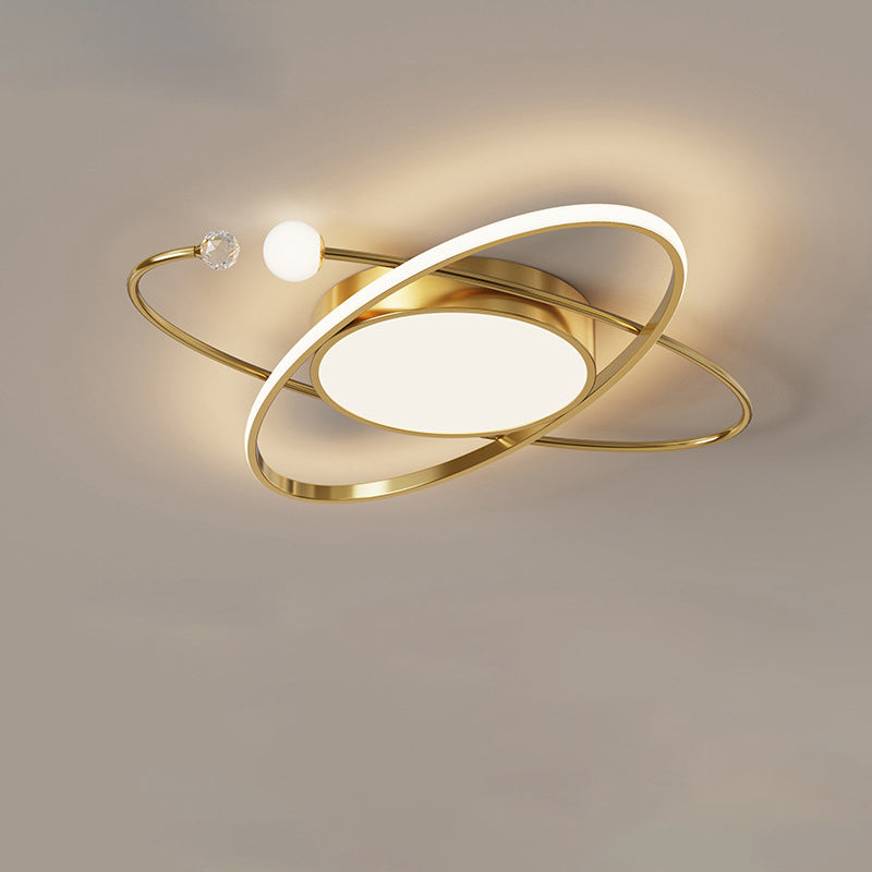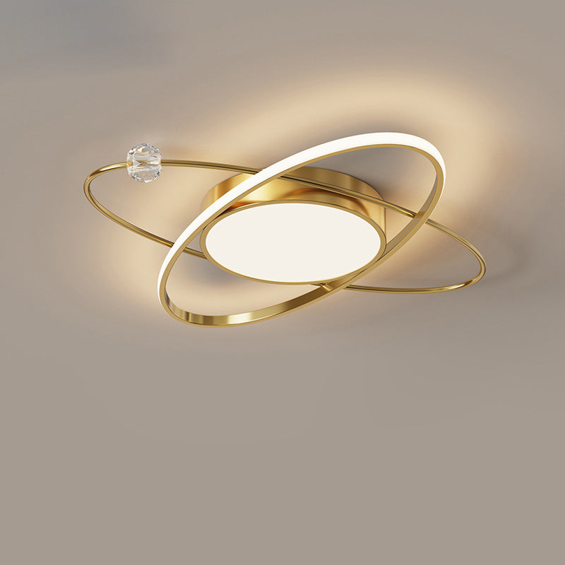 Contemporary Scandinavian Round Double Ring Dome Copper Acrylic LED Flush Mount Ceiling Light For Bedroom