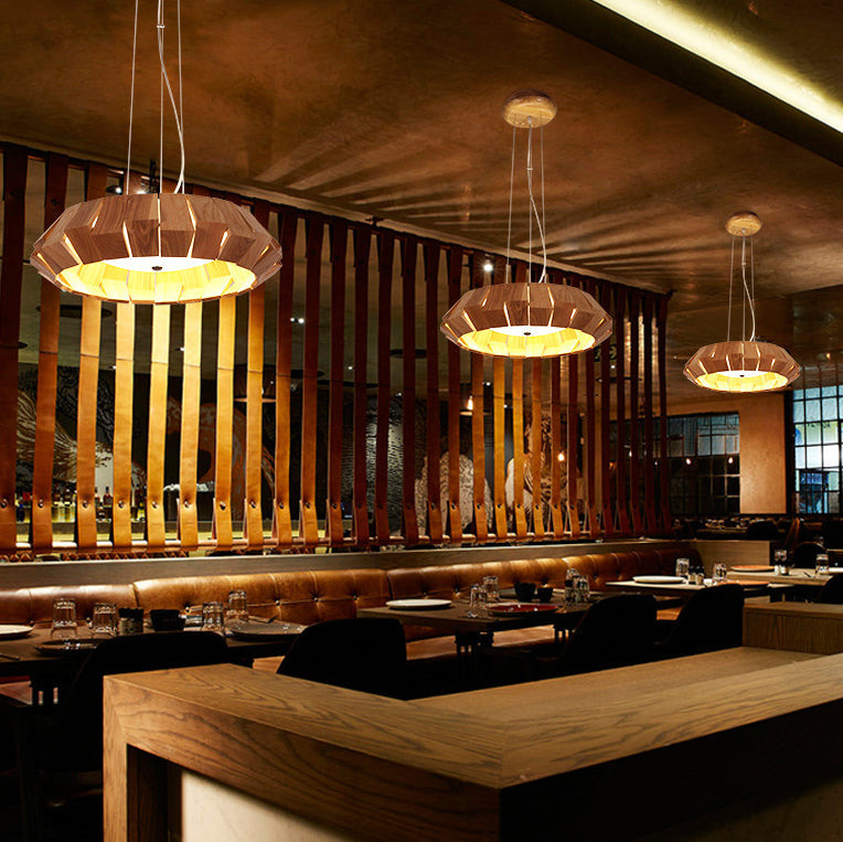 Contemporary Scandinavian Round Flying Saucer Wood Glass LED Chandelier For Living Room