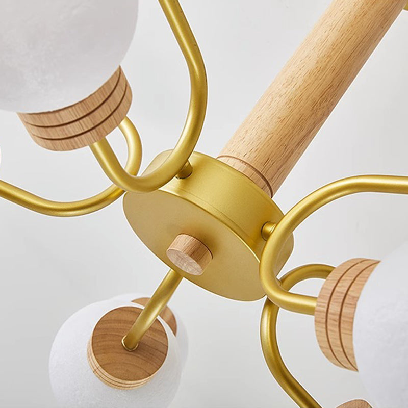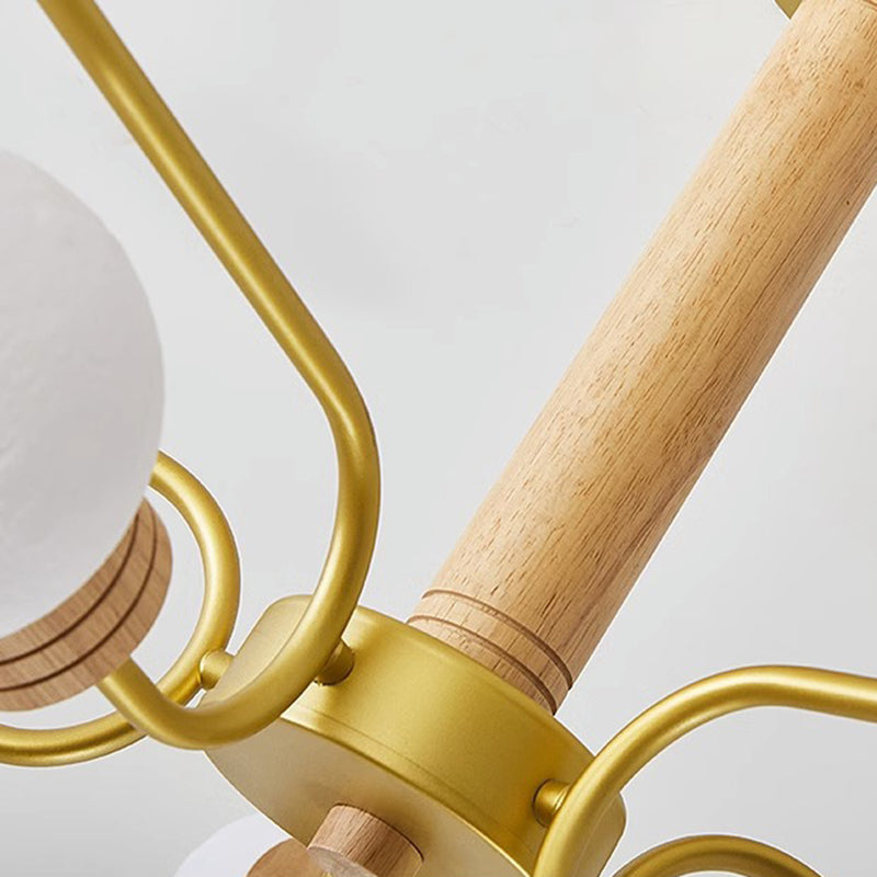 Contemporary Scandinavian Round Iron Oak Acrylic 6/10 Light Chandelier For Bedroom