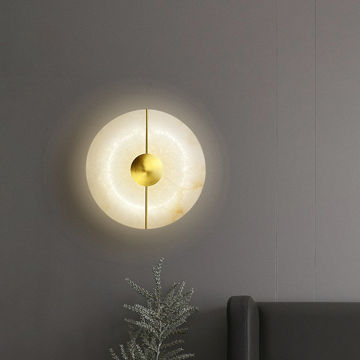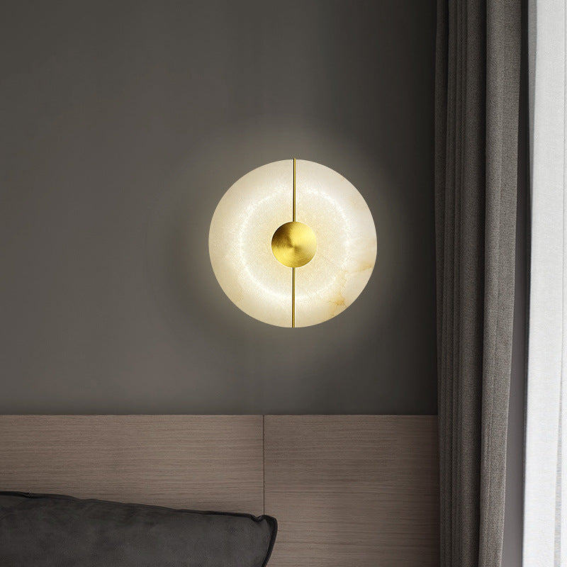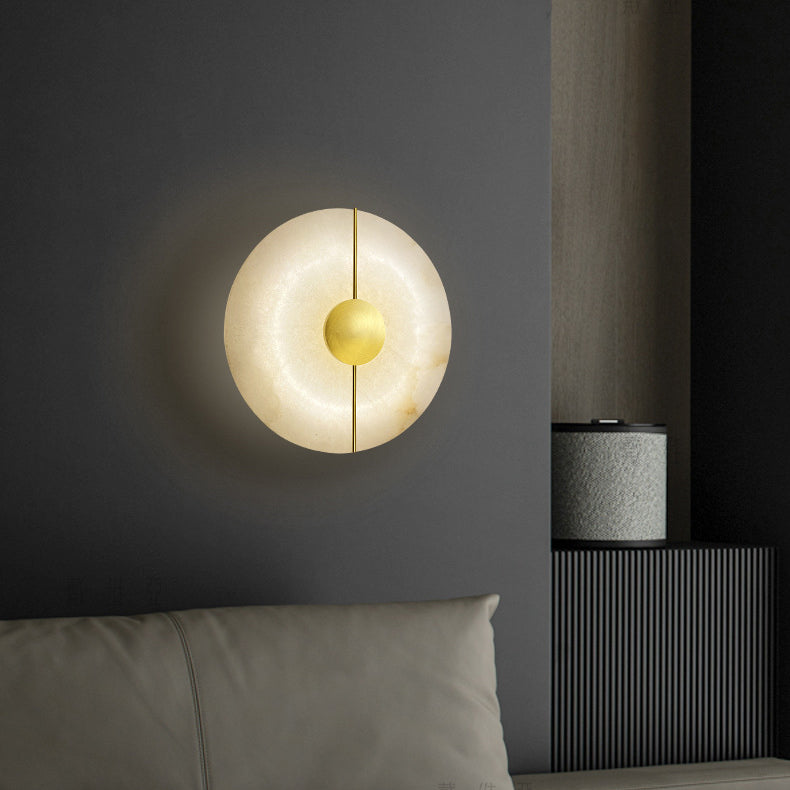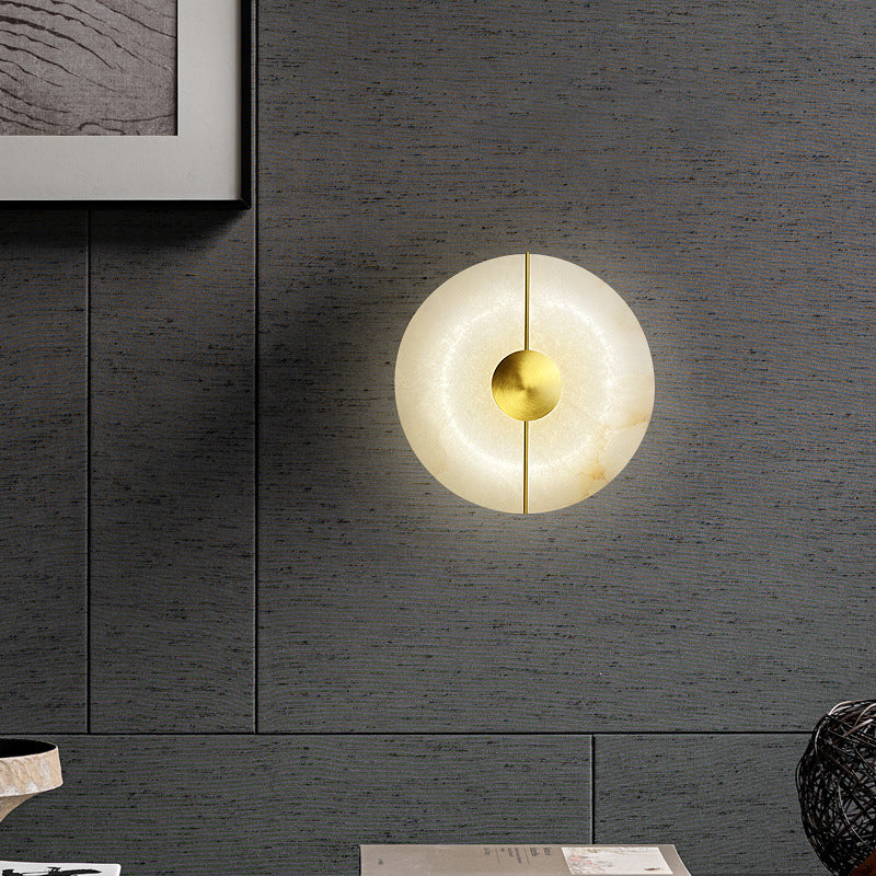 Contemporary Scandinavian Round Oval Iron Marble LED Wall Sconce Lamp For Living Room