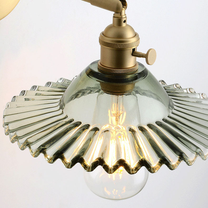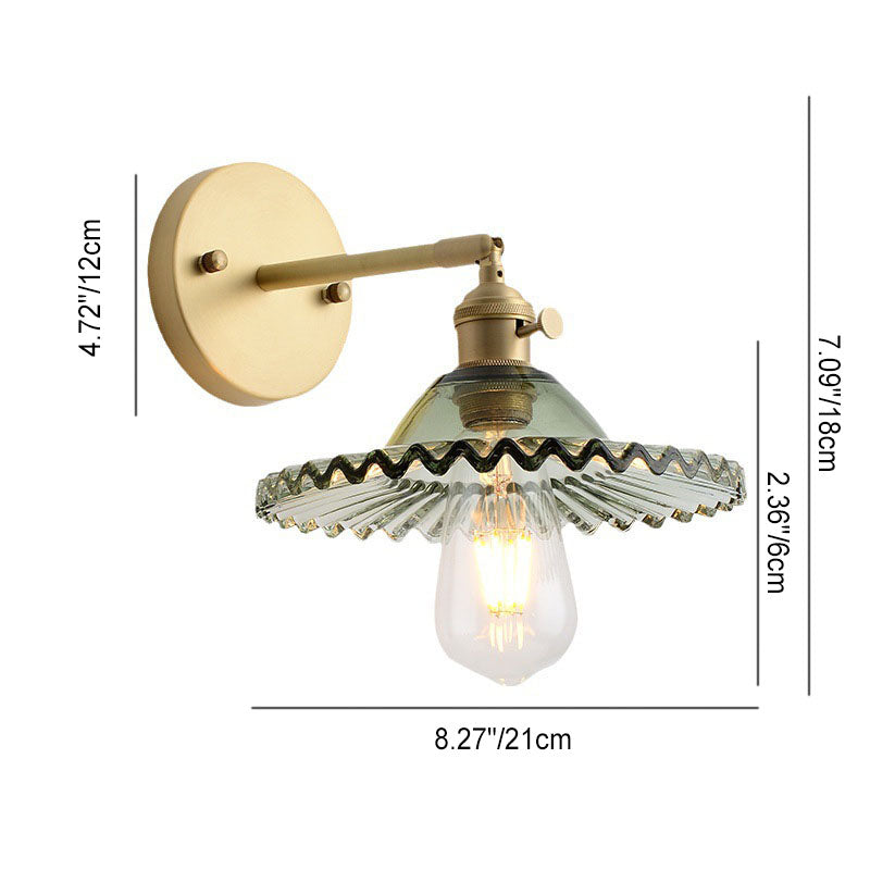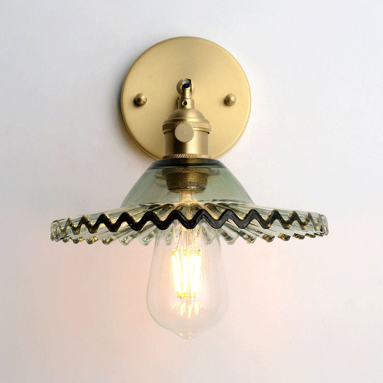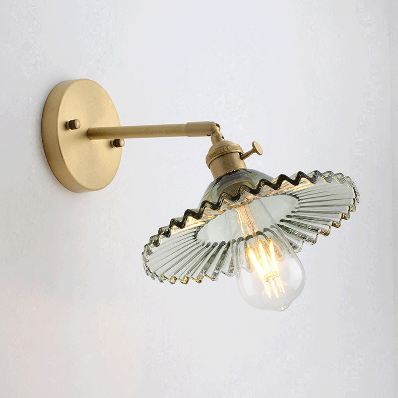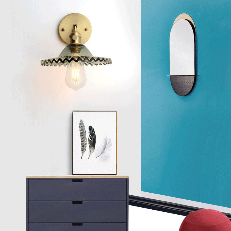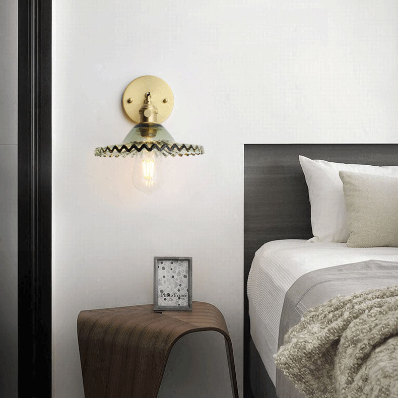 Contemporary Scandinavian Round Ripple All Copper Glass 1-Light Wall Sconce Lamp For Bedroom