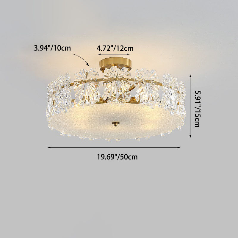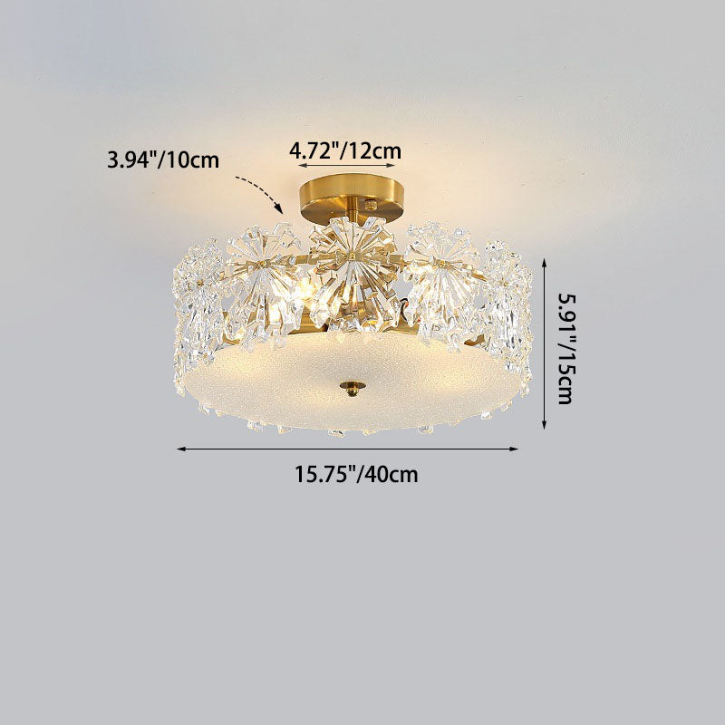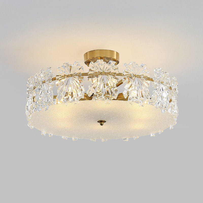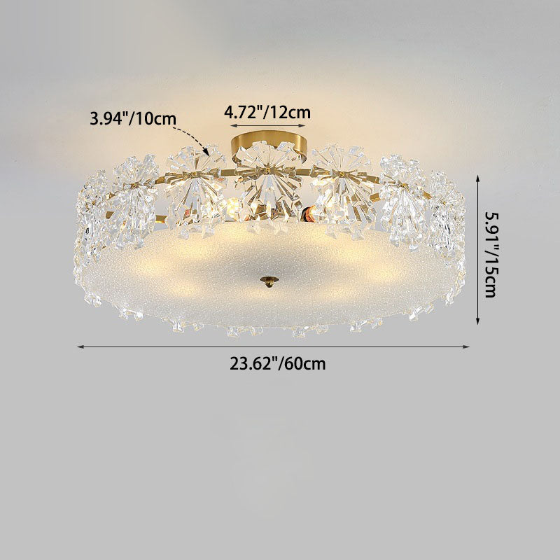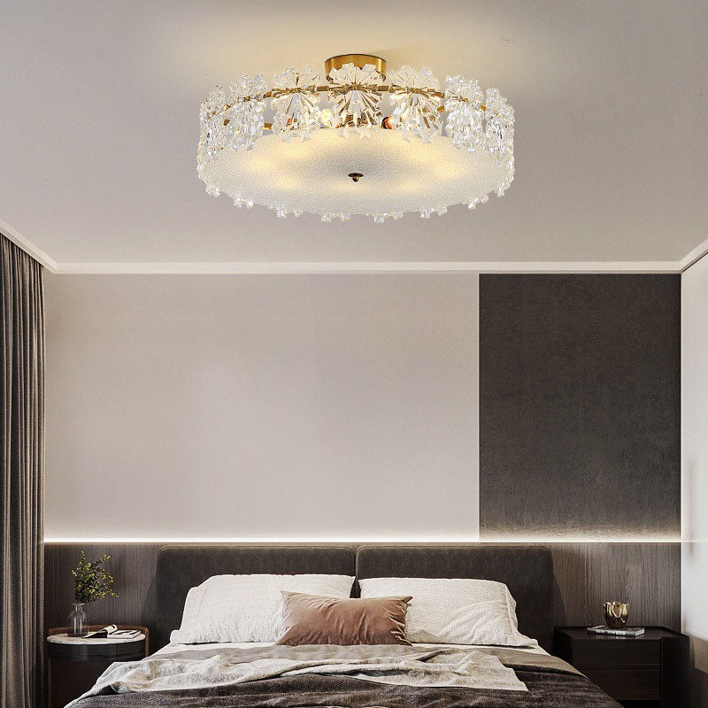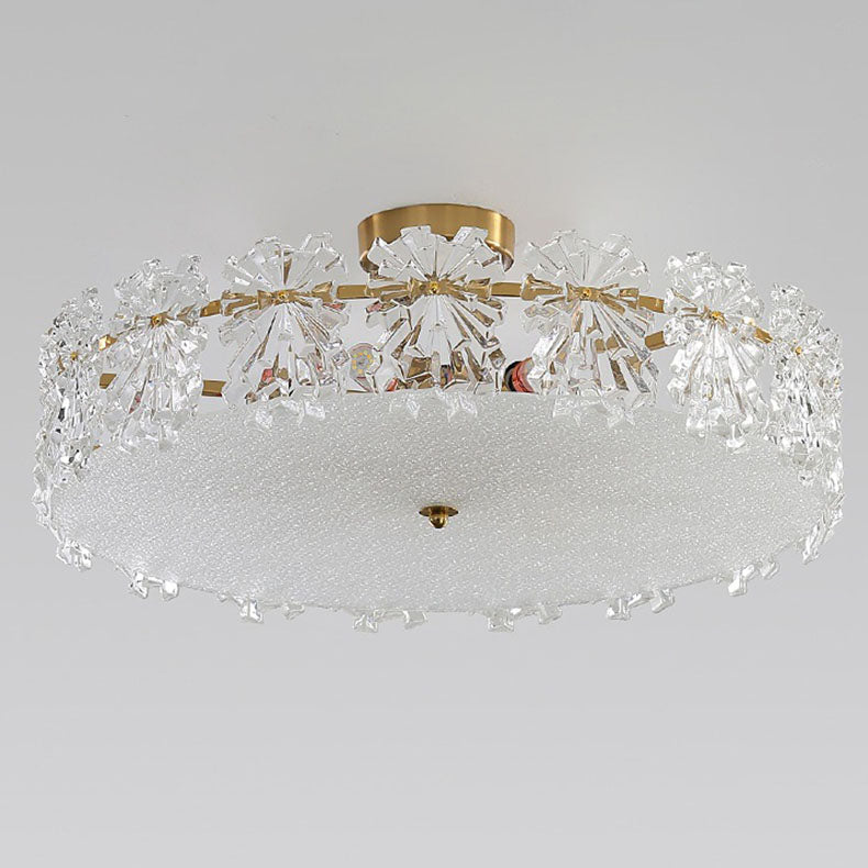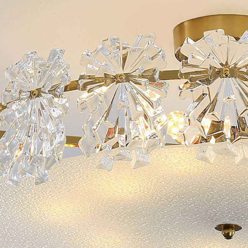 Contemporary Scandinavian Round Snowflake Iron Glass 5/6/8 Lights Semi-Flush Mount Ceiling Light For Bedroom