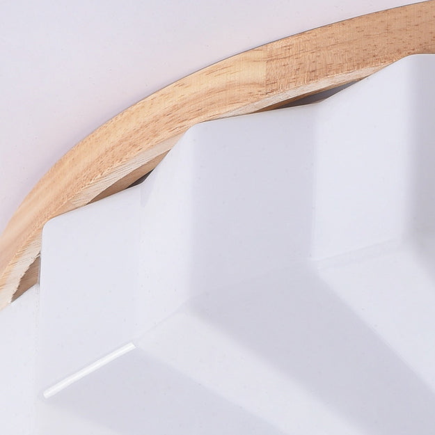 Contemporary Scandinavian Round Stacking Design Solid Wood Acrylic LED Flush Mount Ceiling Light For Bedroom