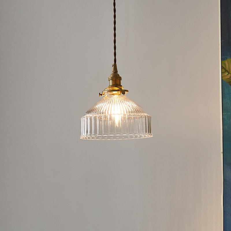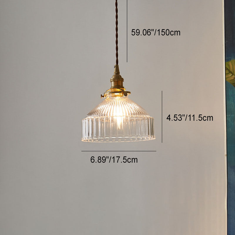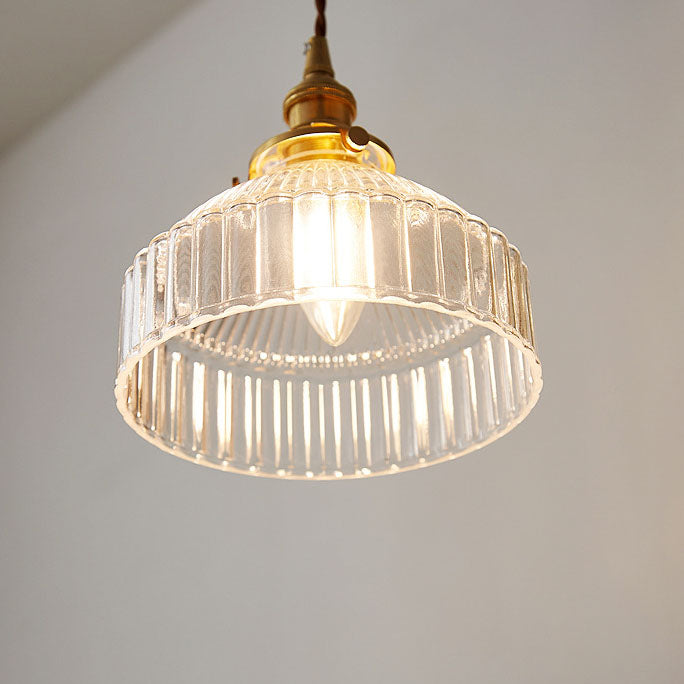 Contemporary Scandinavian Round Striped Glass Brass 1-Light Pendant Light For Living Room