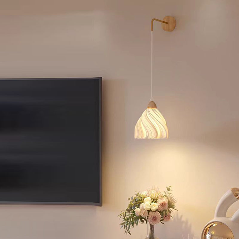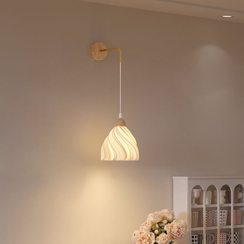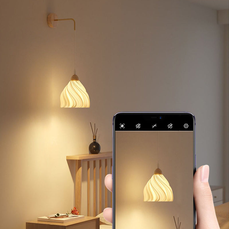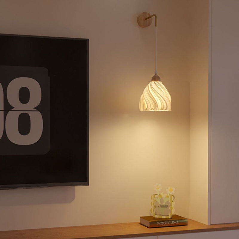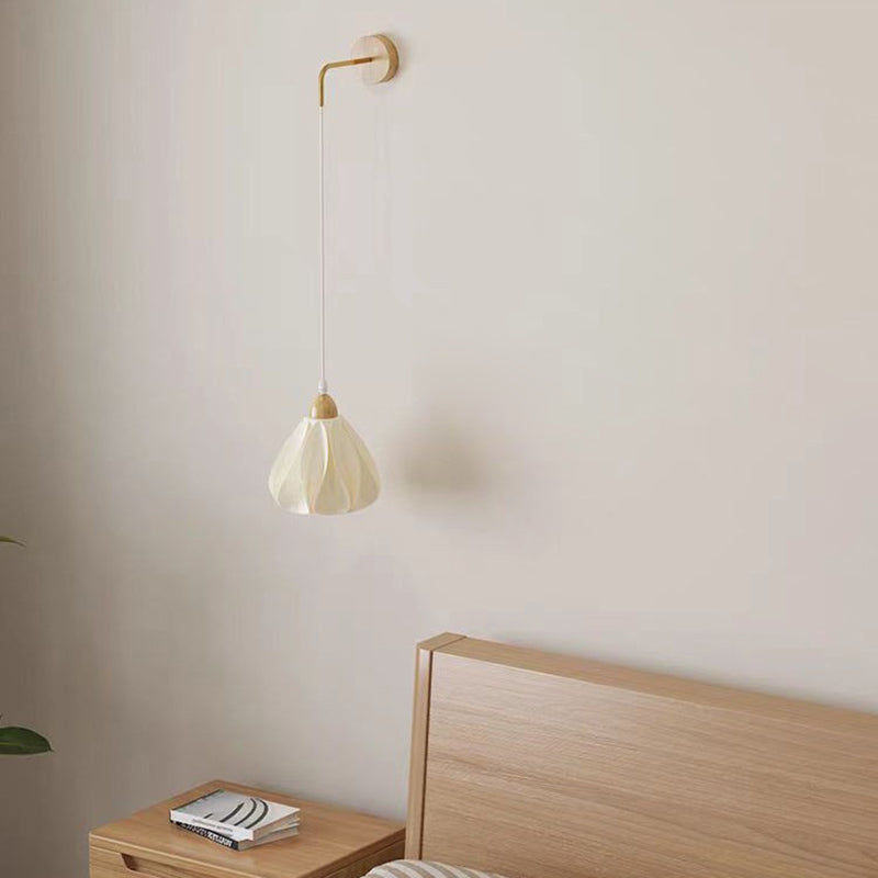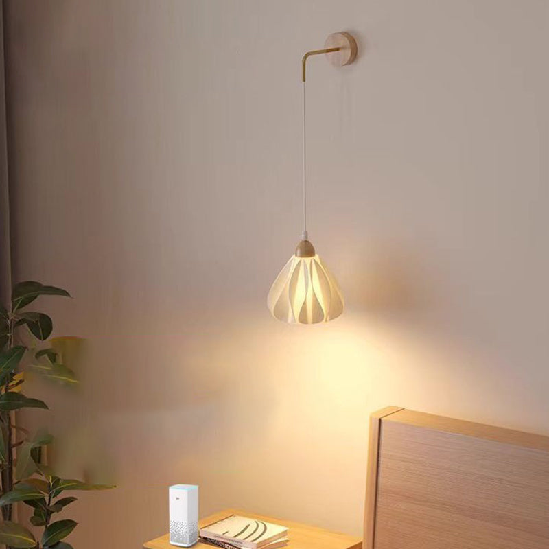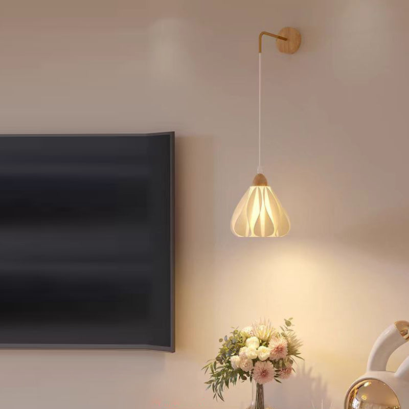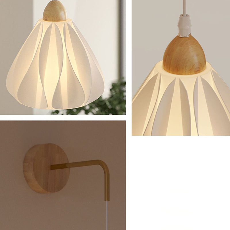 Contemporary Scandinavian Semicircle Curve Petal Disc Base Wood PLA 1-Light Wall Sconce Lamp For Living Room