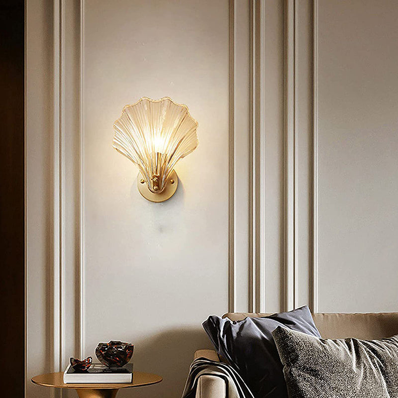 Contemporary Scandinavian Shell Disc Base Iron Brass Glass 1-Light Wall Sconce Lamp For Bedroom