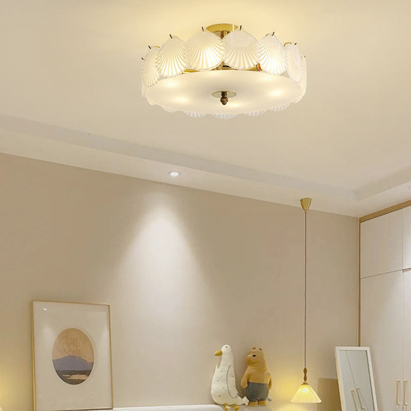 Contemporary Scandinavian Shell Round Iron Glass 6/8 Light Chandelier For Bedroom