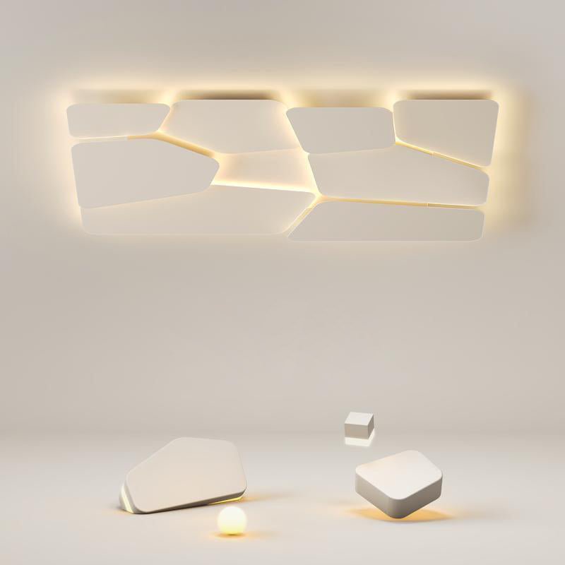 Contemporary Scandinavian Square Rectangle Spliced Iron Acrylic LED Flush Mount Ceiling Light For Bedroom