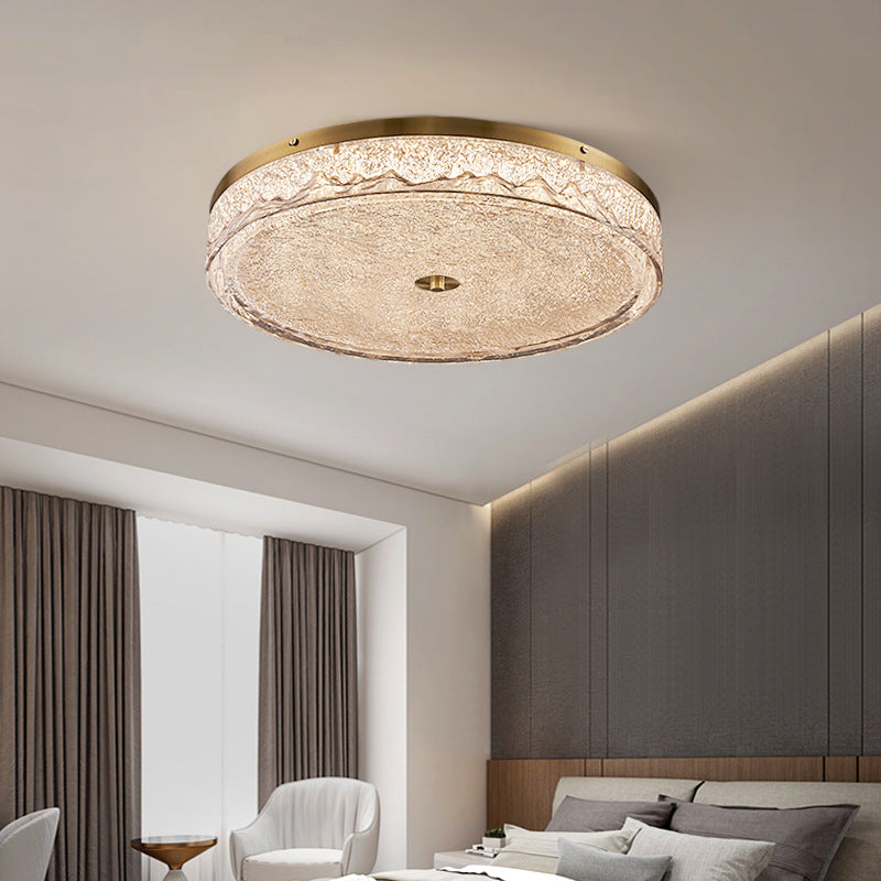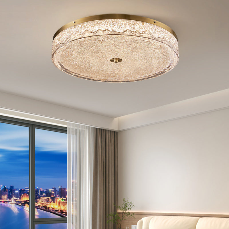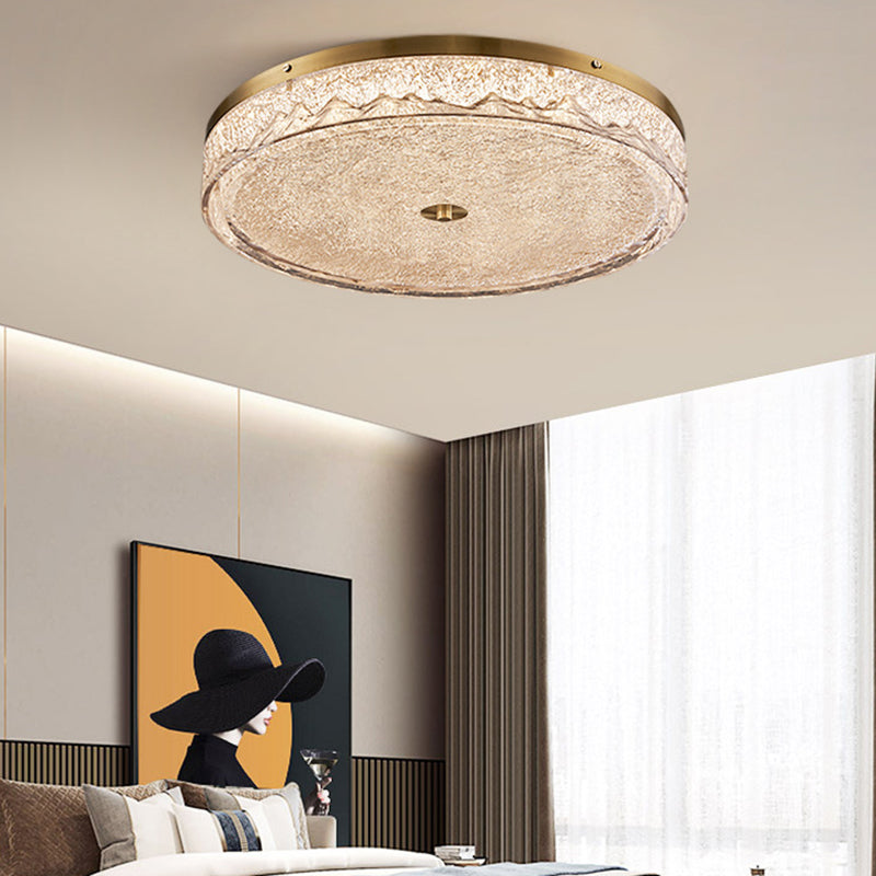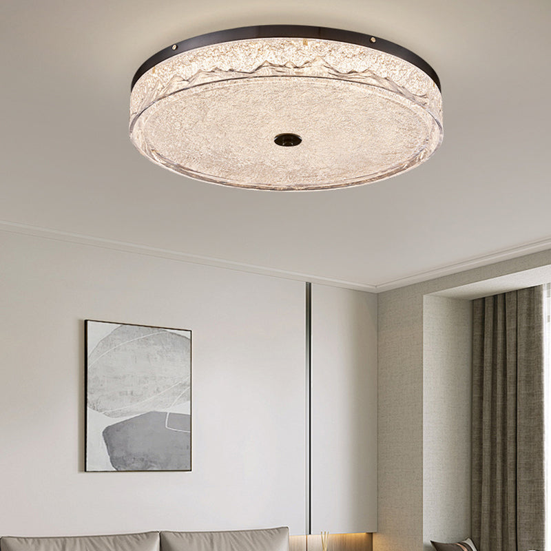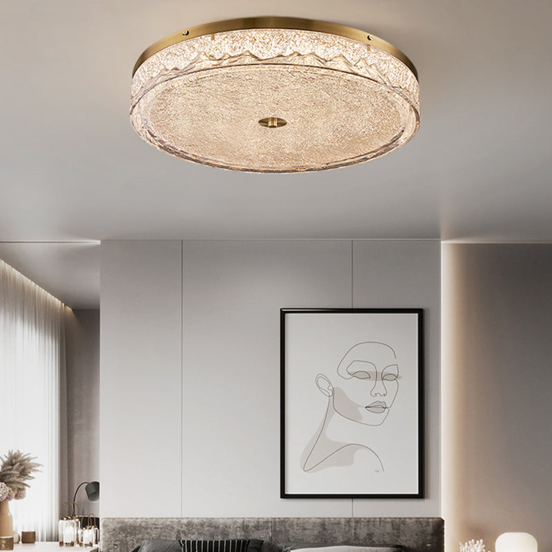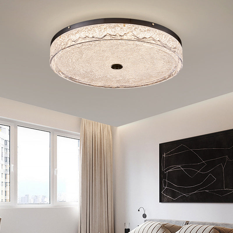Contemporary Scandinavian Stainless Steel Iron Resin Round Crackle LED Flush Mount Ceiling Light For Bedroom