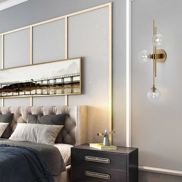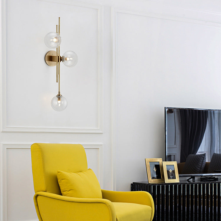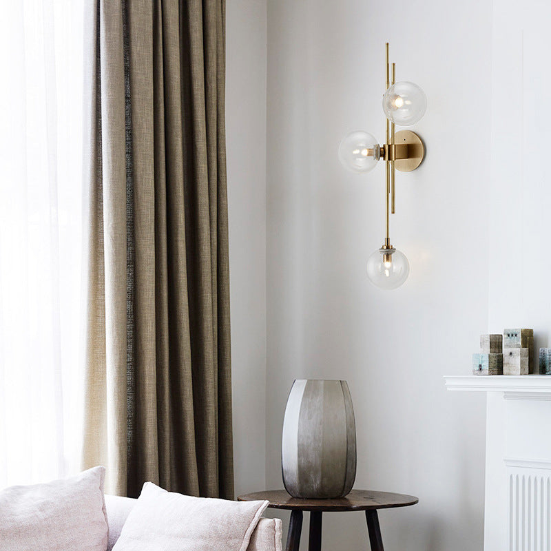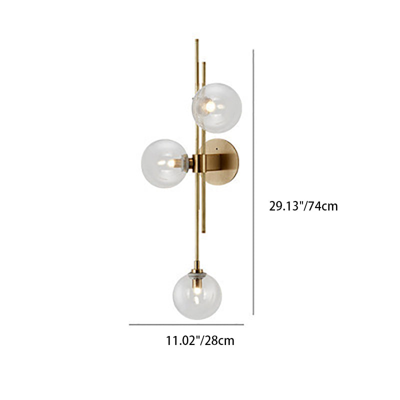 Contemporary Scandinavian Strip Orb Hardware Glass 3-Light Wall Sconce Lamp For Living Room