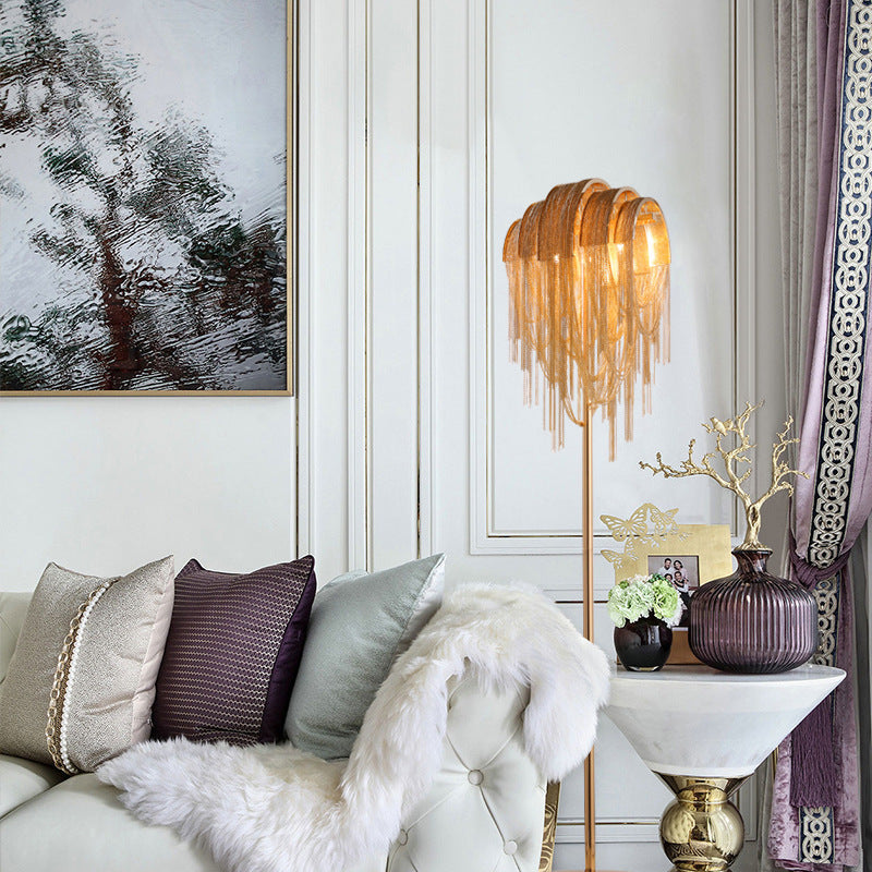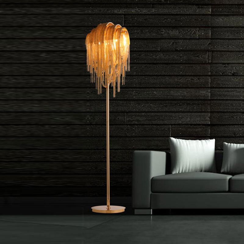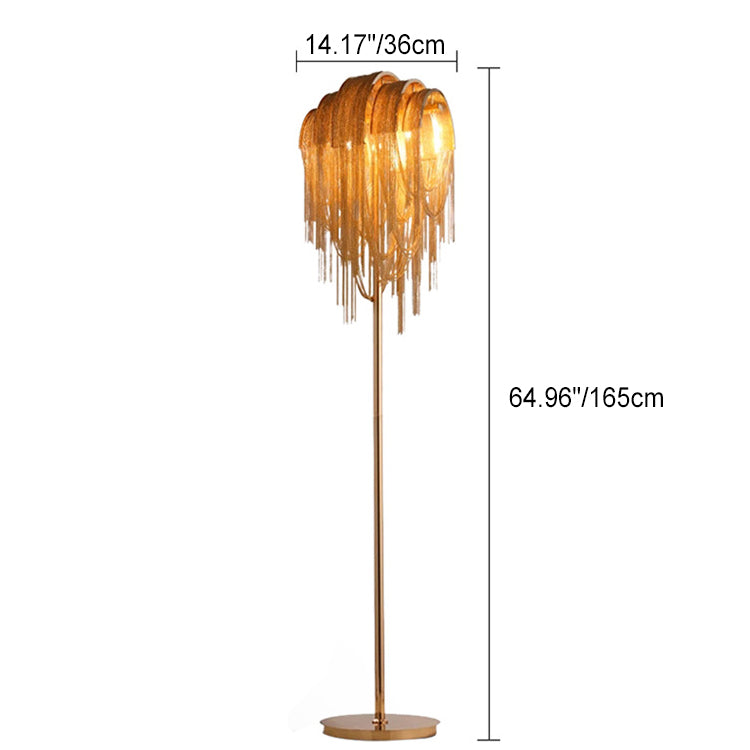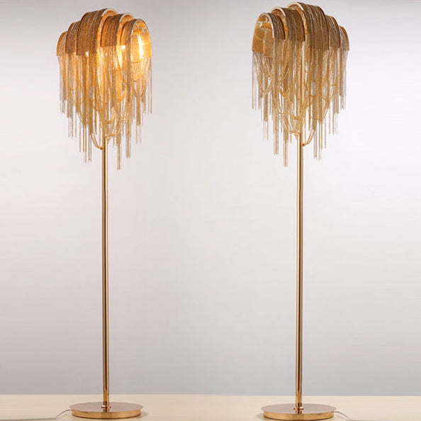 Contemporary Scandinavian Tassel Chain Iron Aluminum 2-Light Standing Floor Lamp For Living Room