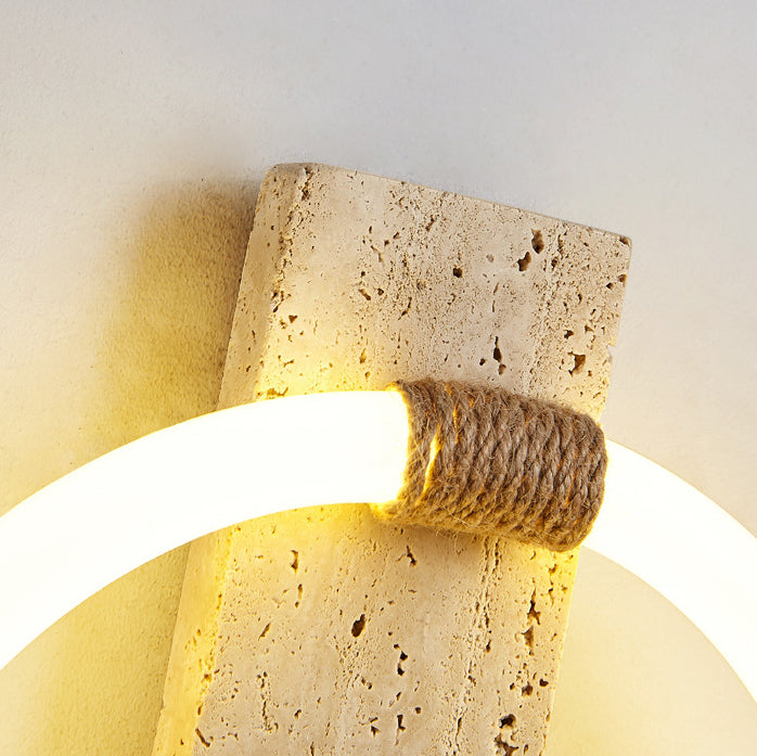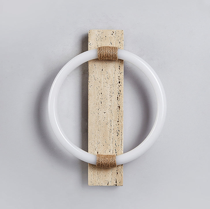 Contemporary Scandinavian Travertine Acrylic Twine Circle LED Wall Sconce Lamp For Bedroom