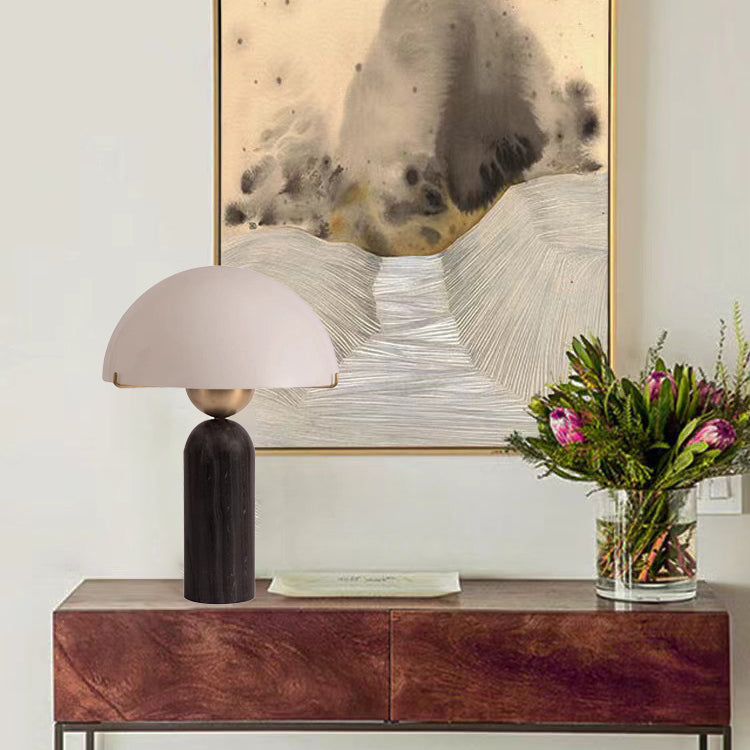 Contemporary Scandinavian Travertine Marble Glass Resin Dome Cylinder 1-Light Table Lamp For Bedside