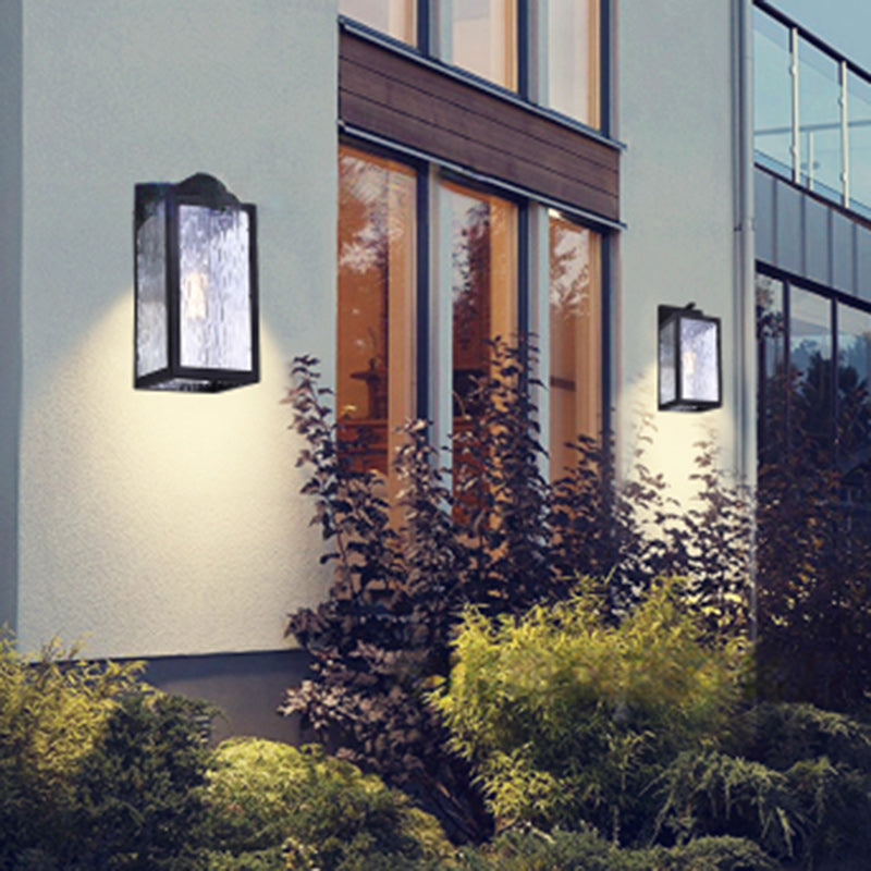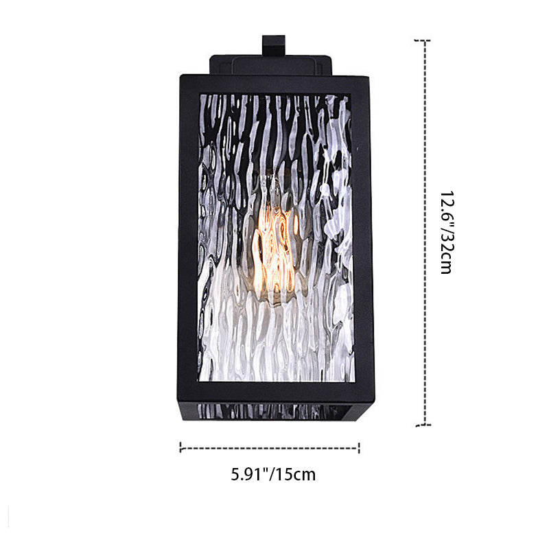 Contemporary Scandinavian Waterproof Rectangle Square Aqua Glass Iron 1-Light Outdoor Wall Sconce Lamp For Garden