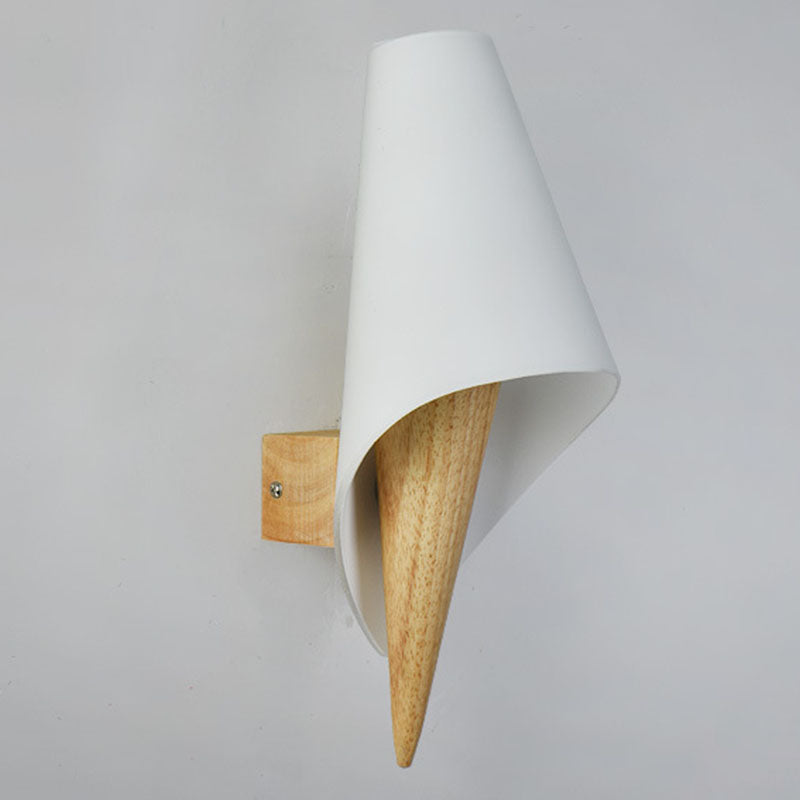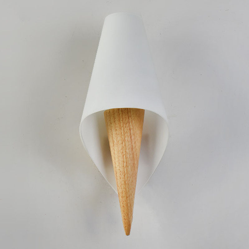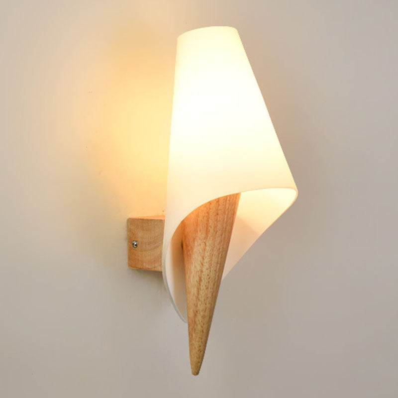 Contemporary Scandinavian Wood Glass Ice Cream 1-Light Wall Sconce Lamp For Bedroom