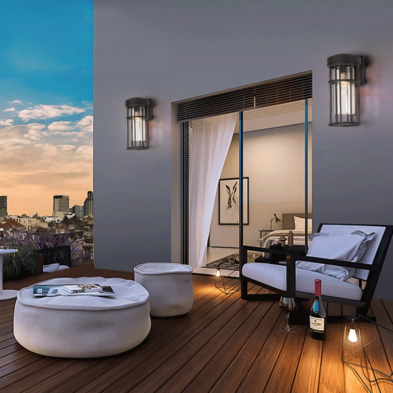 Contemporary Simplicity Aluminum Glass Cylinder 1-Light Outdoor Wall Sconce Lamp For Garden