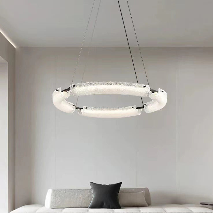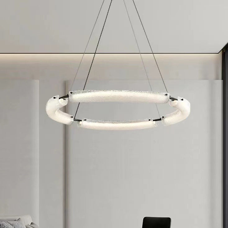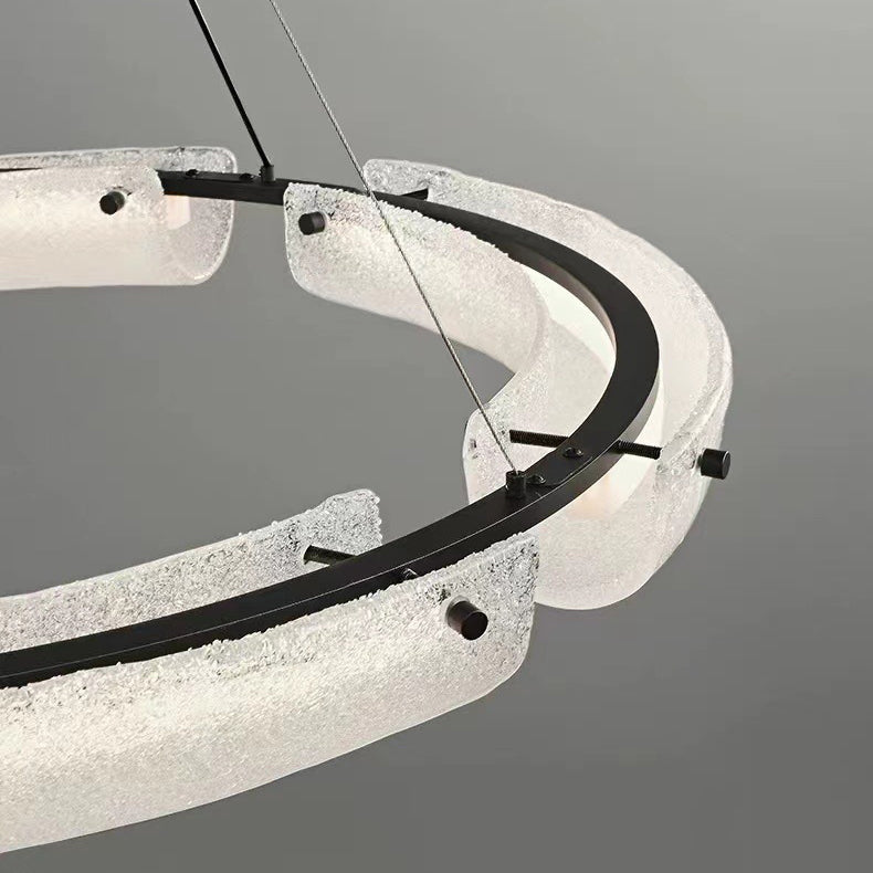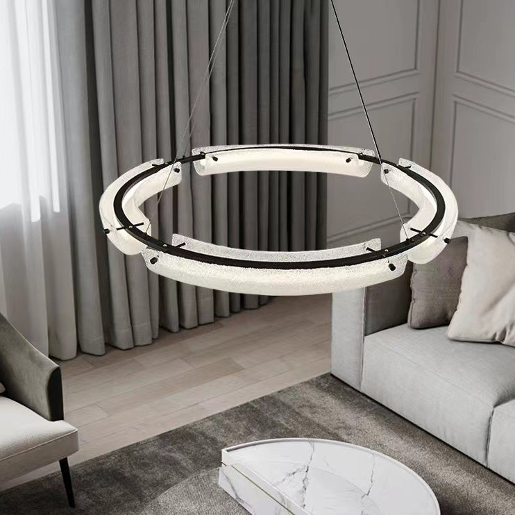 Contemporary Simplicity Frosted Glass Circle Ring Copper Acrylic LED Chandelier For Living Room