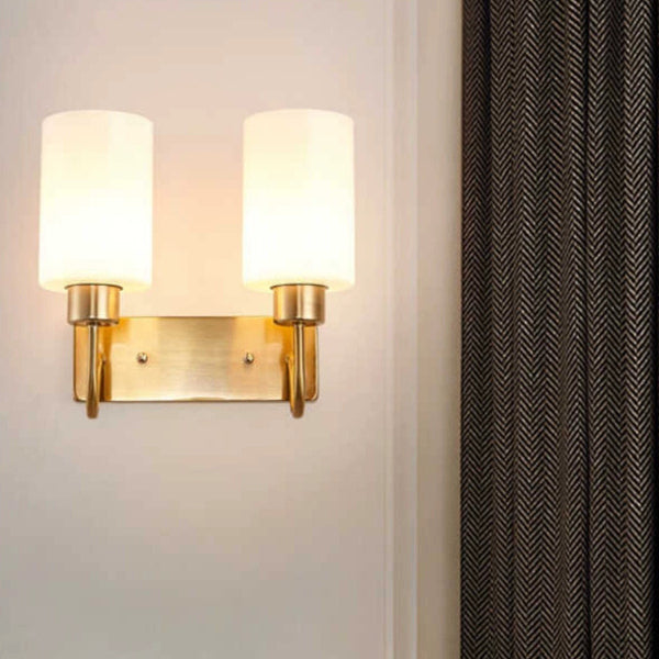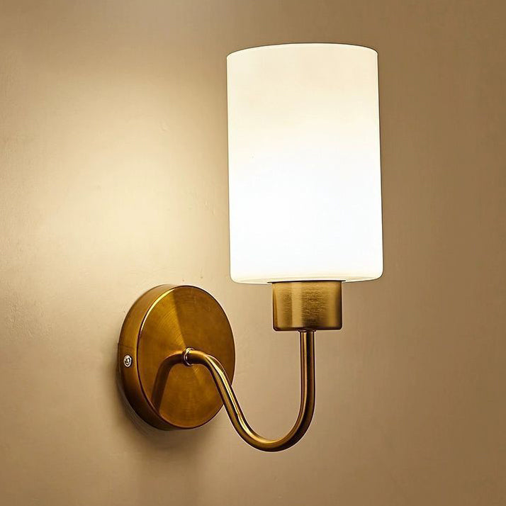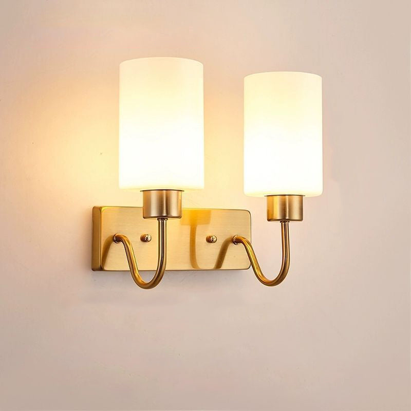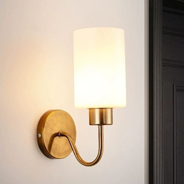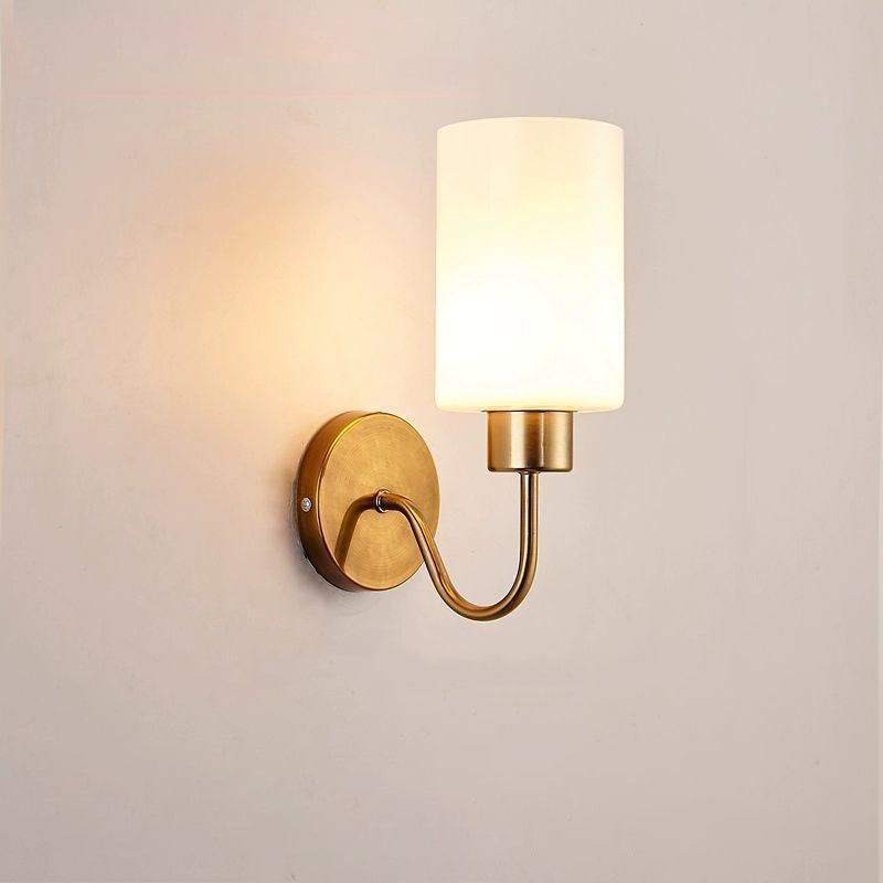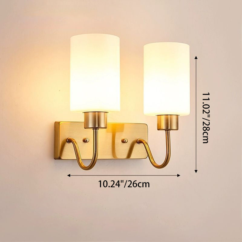 Contemporary Simplicity Iron Frame Glass Cylinder 1/2-Light Wall Sconce Lamp For Bedroom