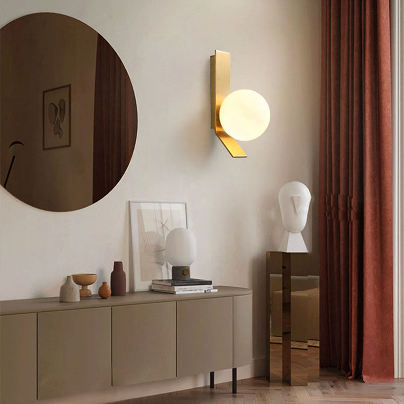 Contemporary Simplicity Iron Strip Glass Ball Shade 1/2-Light Wall Sconce Lamp For Living Room