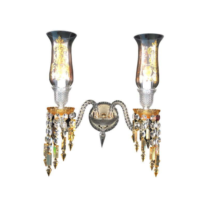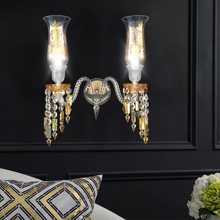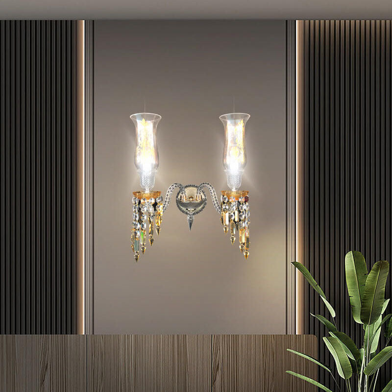 European Light Luxury Crystal Beaded Candle 2-Light Wall Sconce Lamp