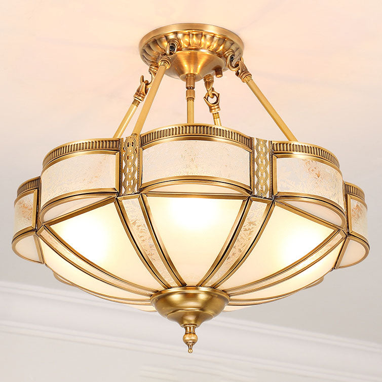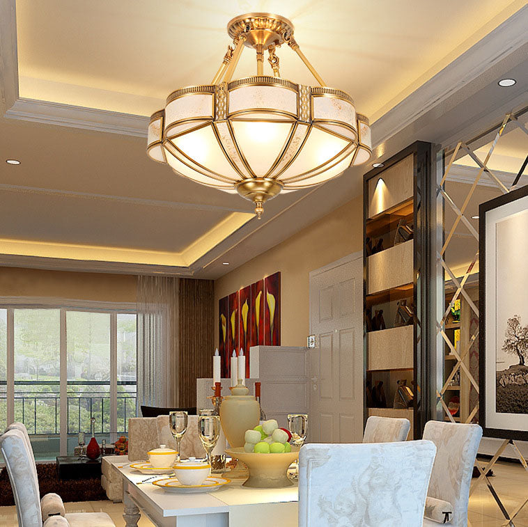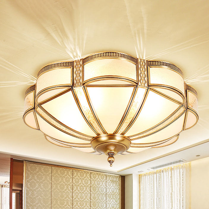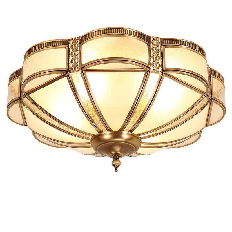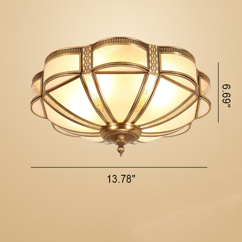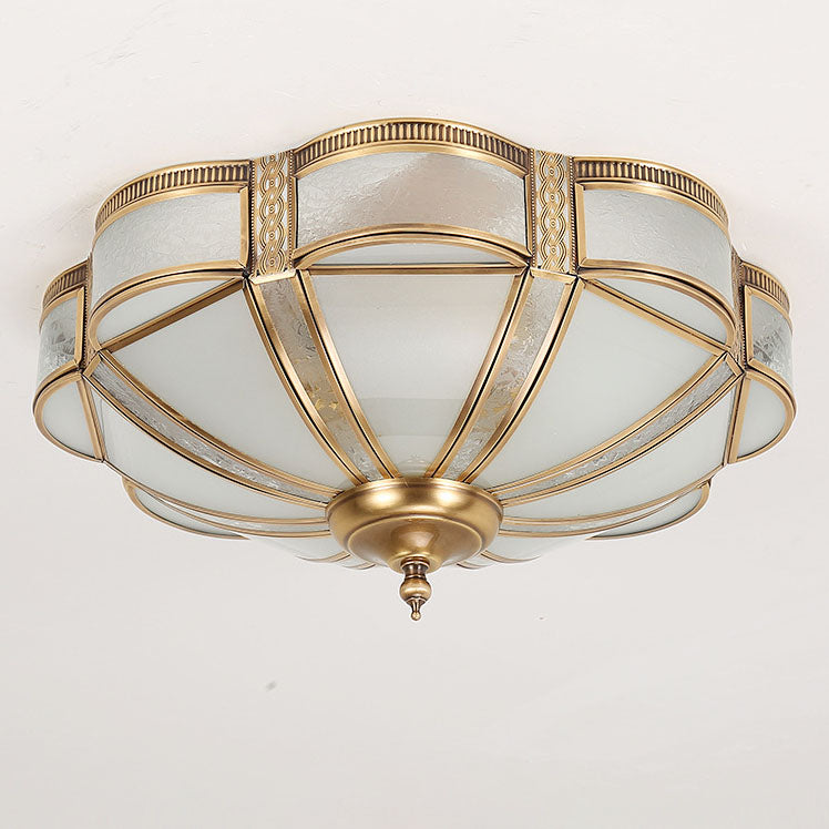 European Light Luxury Floral Copper Glass 3/4/6-Light Flush Mount Lighting