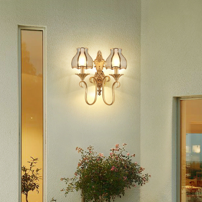 European Light Luxury Vintage Copper Glass 1/2-Light Wall Sconce Light