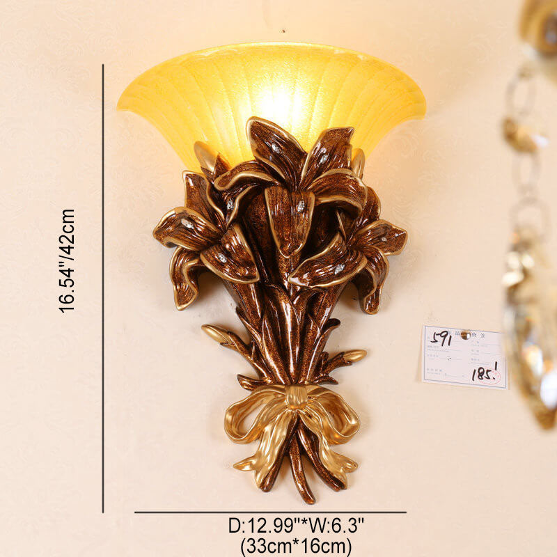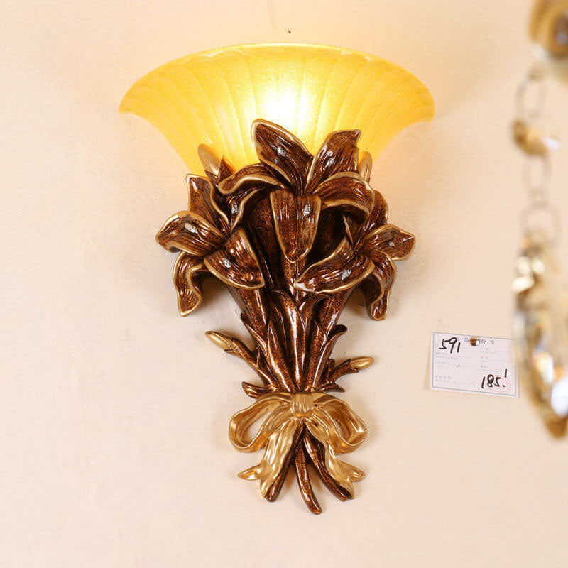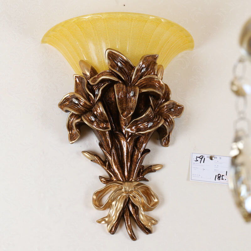 European Minimalist Round Glass Resin Bouquet Lamp Arm 1-Light Wall Sconce Lamp