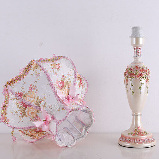 European Romantic Fabric Tassel 1-Light Table Lamp