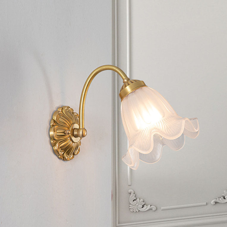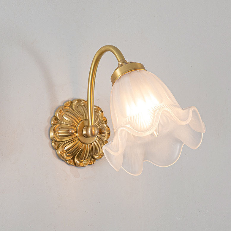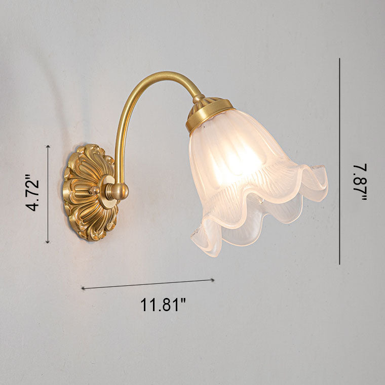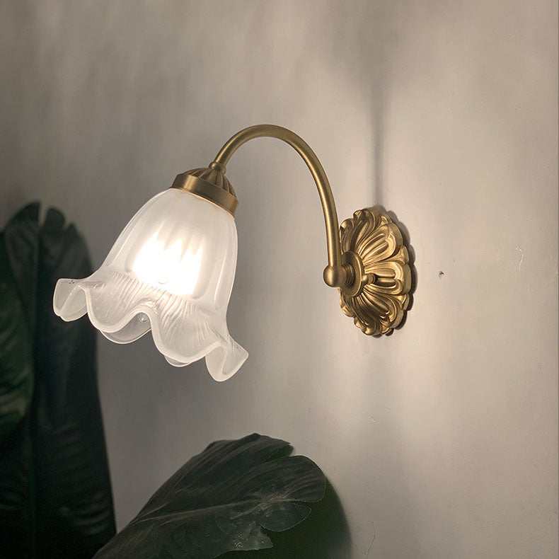 European Vintage Floral Copper Glass 1-Light Wall Sconce Lamp