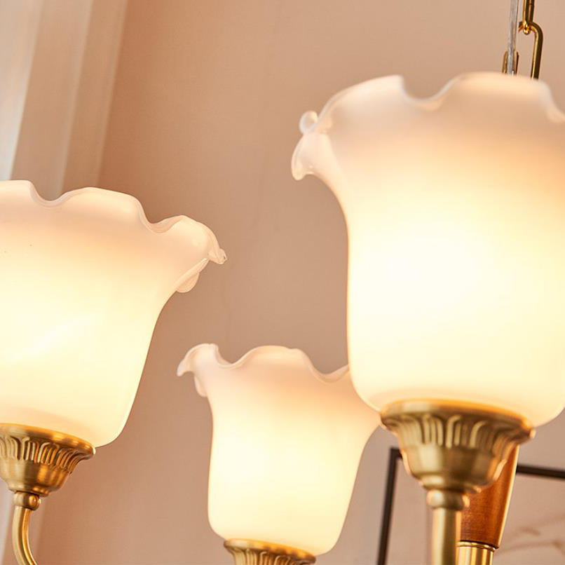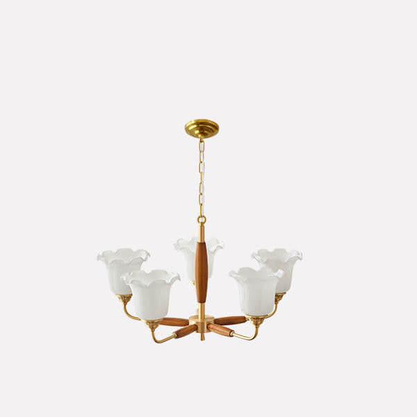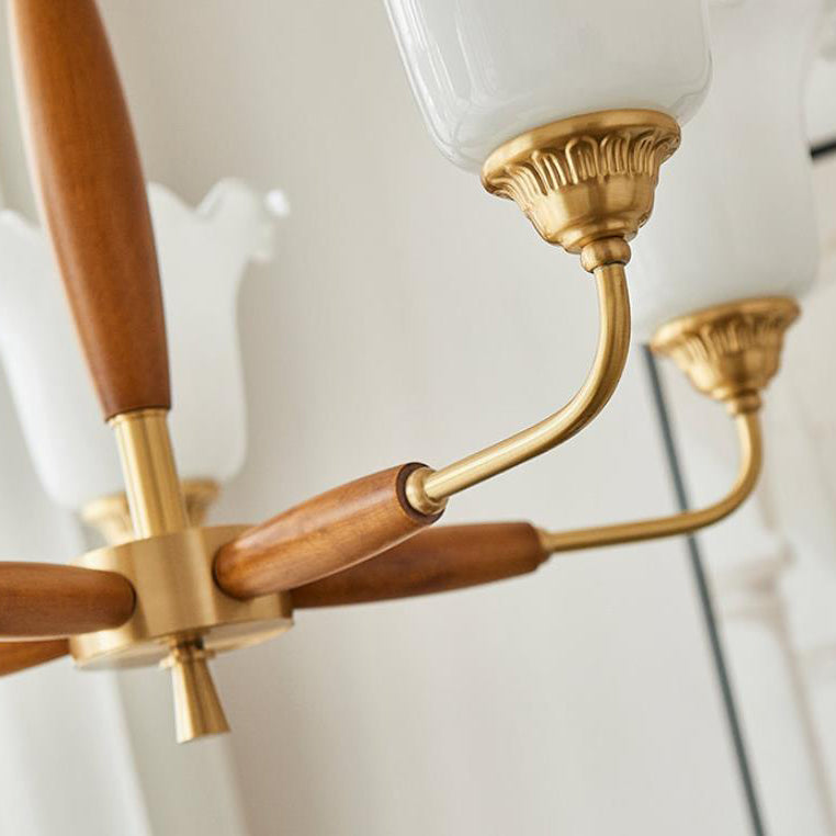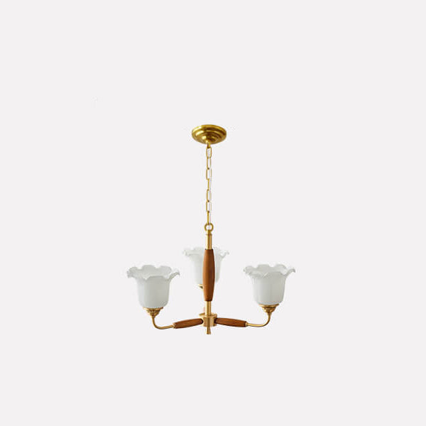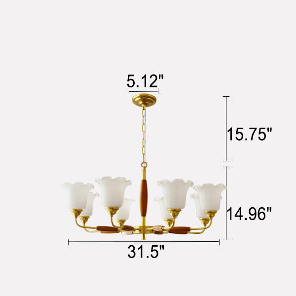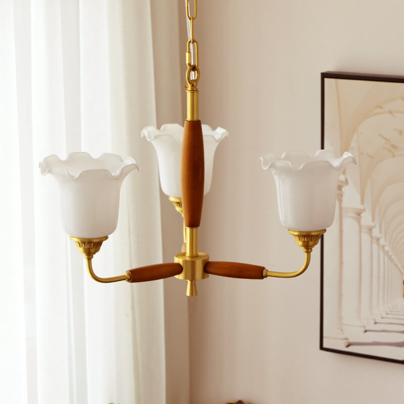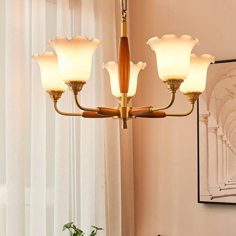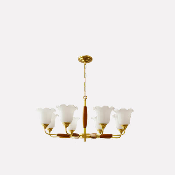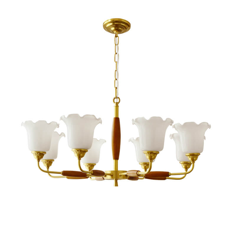 European Vintage Rustic Copper Wood Glass 3/5/8-Light Chandelier
