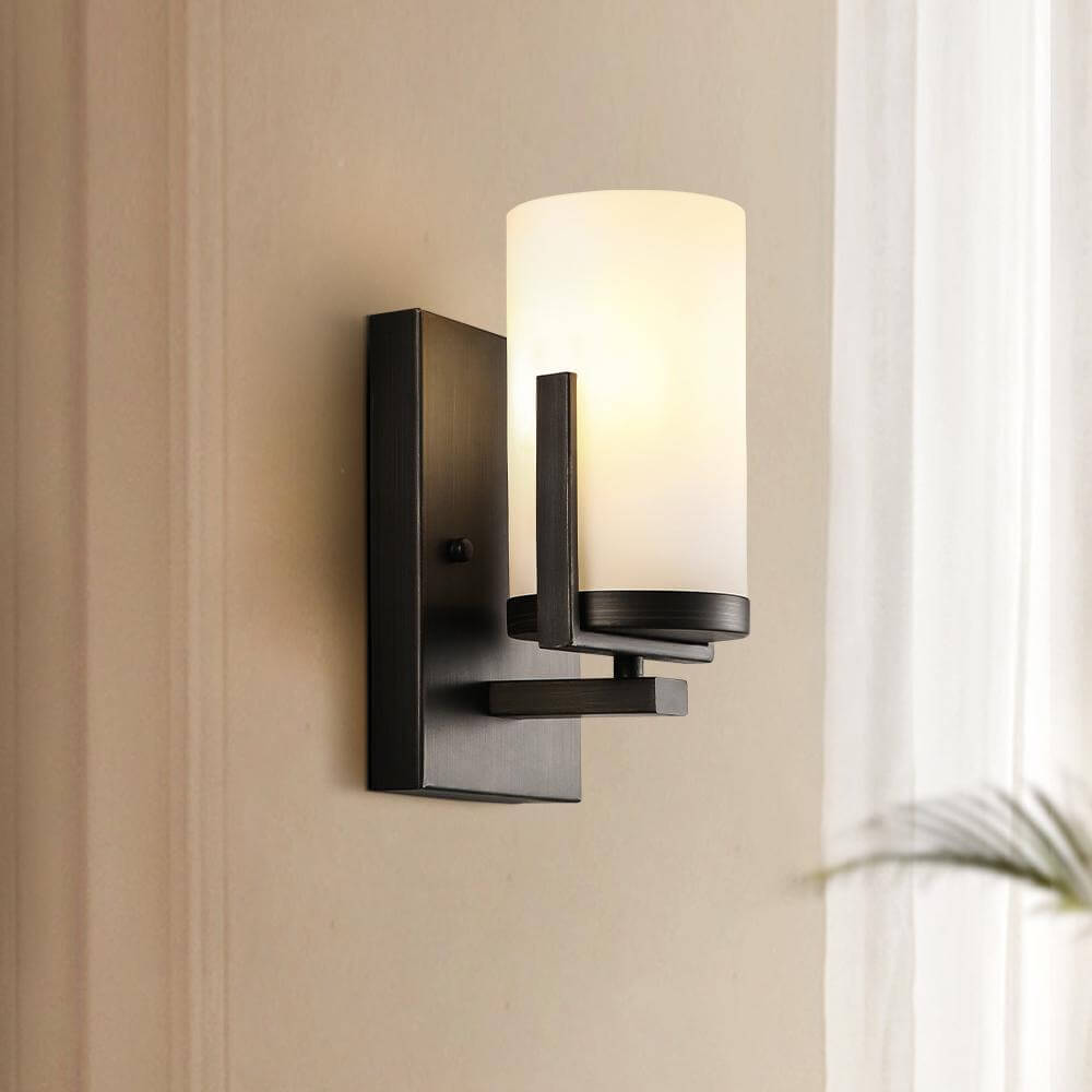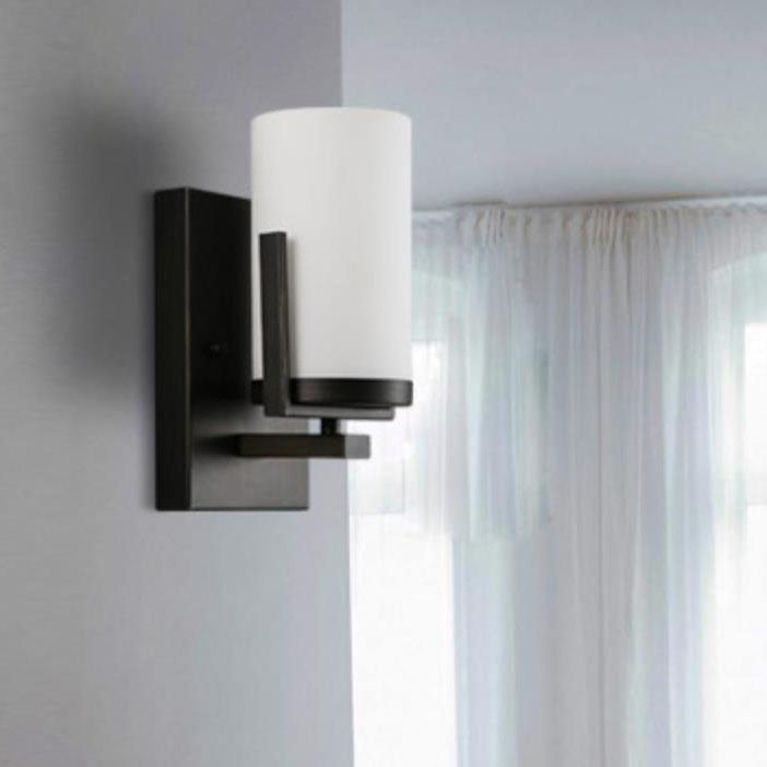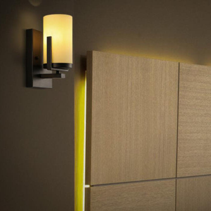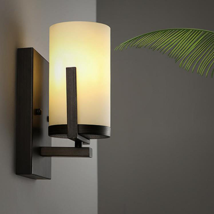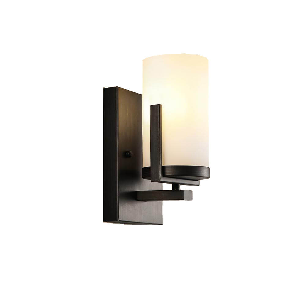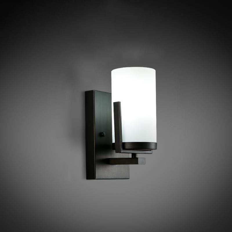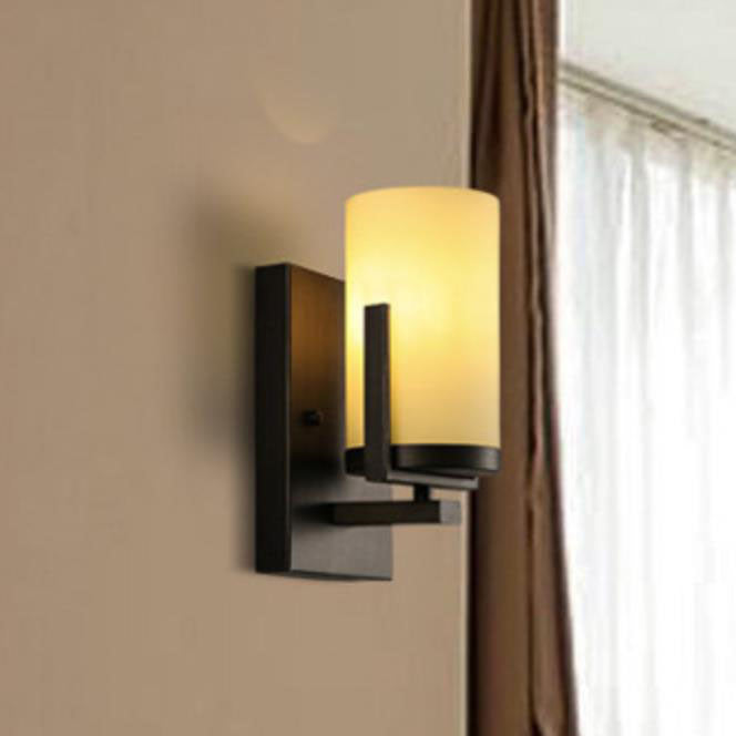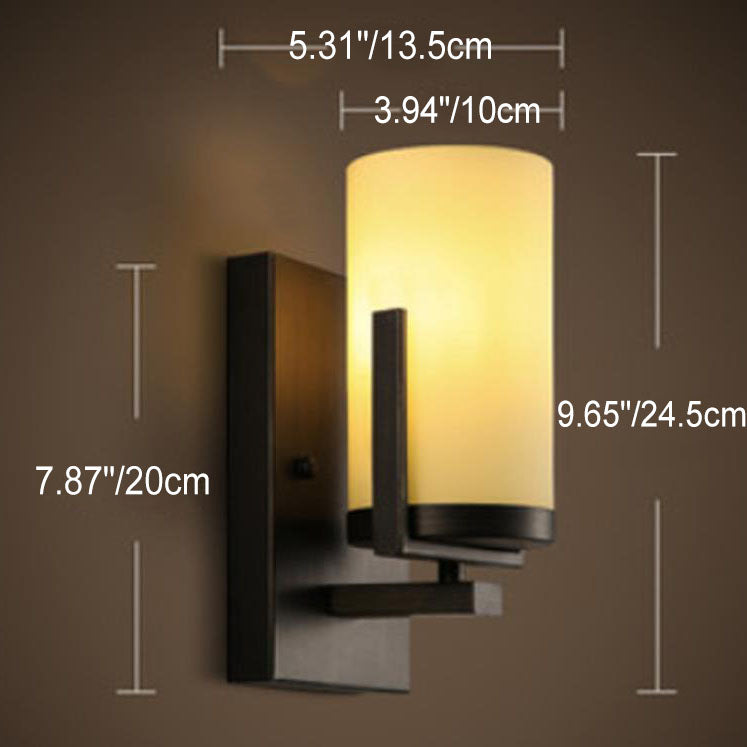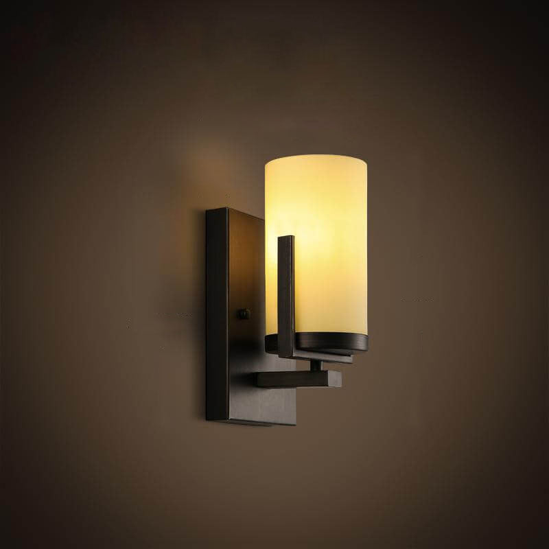 European Vintage Rustic Cylindrical Iron Glass 1-Light Wall Sconce Lamp