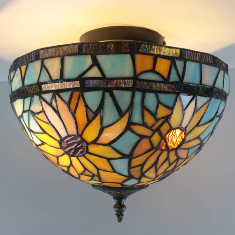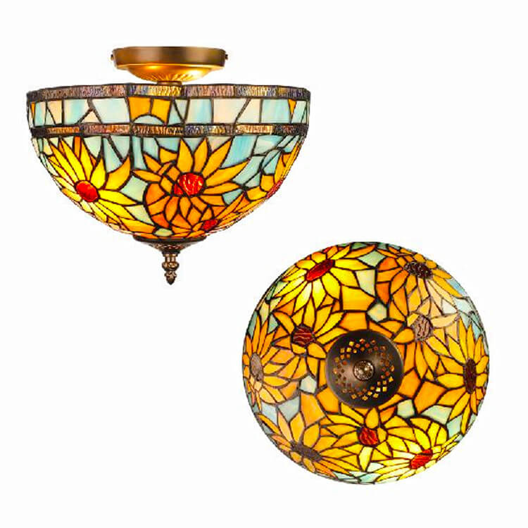 European Vintage Tiffany 2-Light Flush Mount Lighting