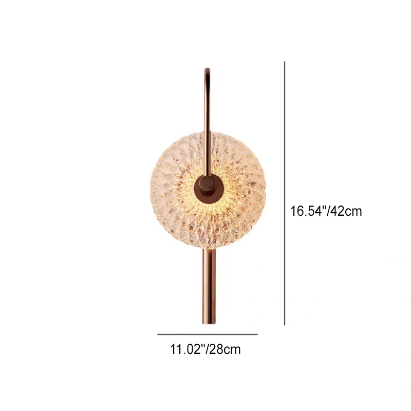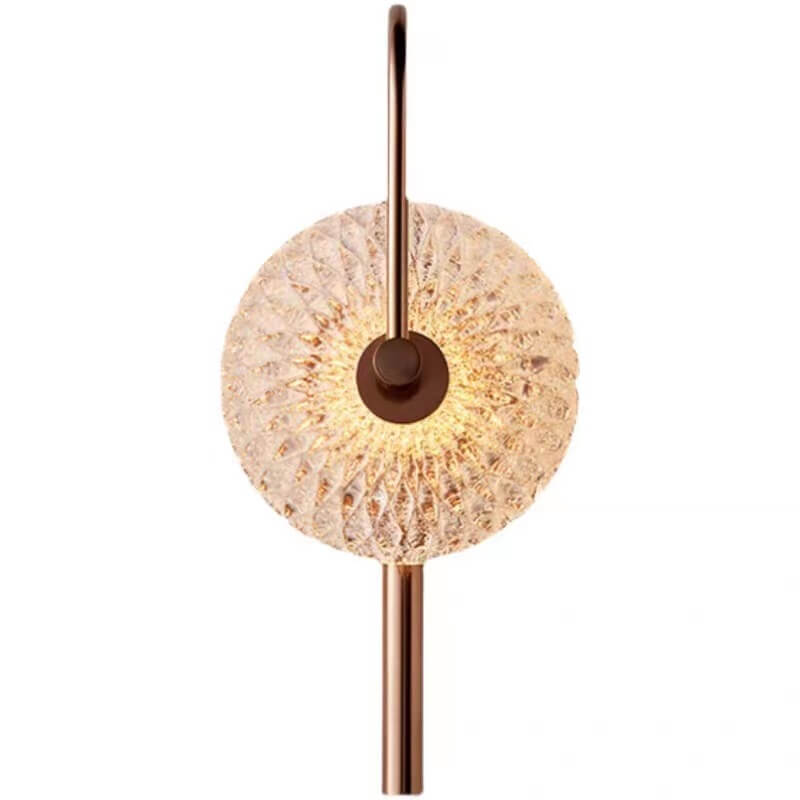 French Light Luxury Copper Water Pattern Glass Round LED Wall Sconce Lamp