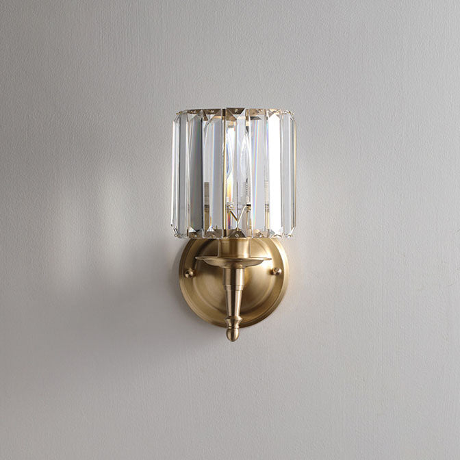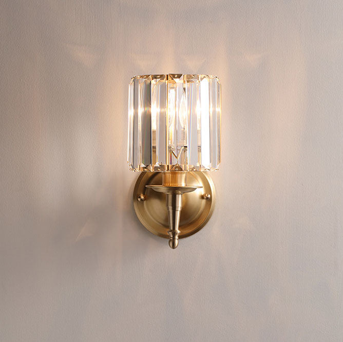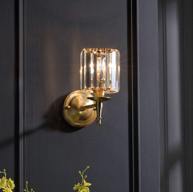 French Light Luxury Crystal Copper Cylinder 1-Light Wall Sconce Lamp
