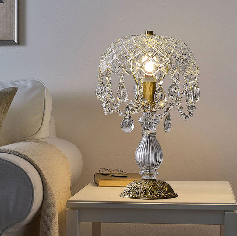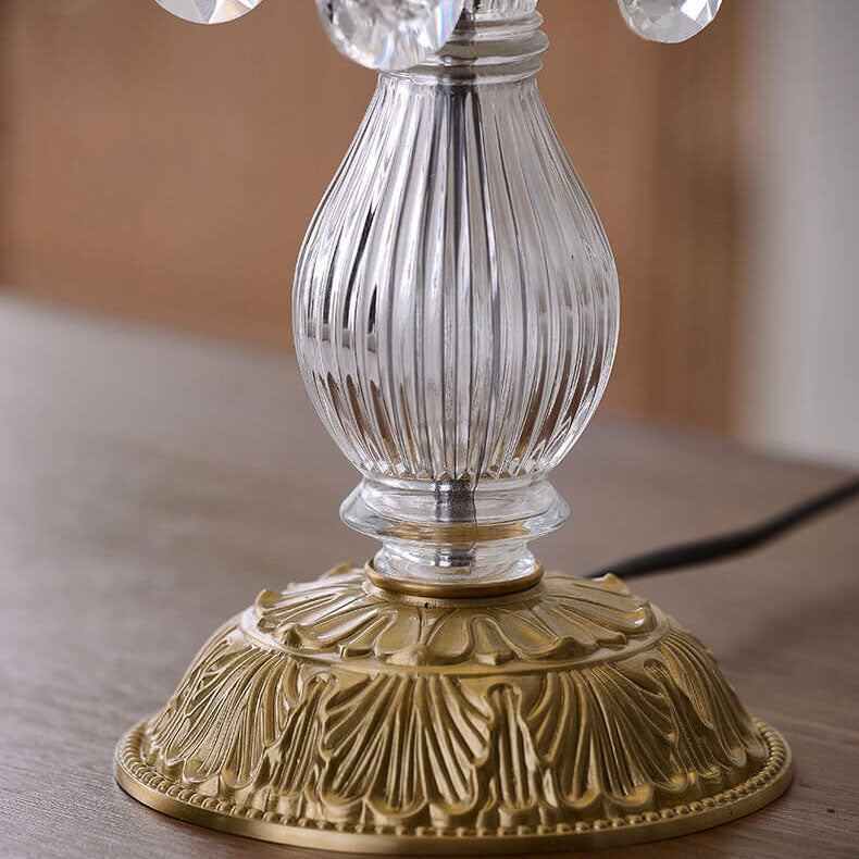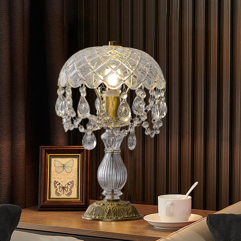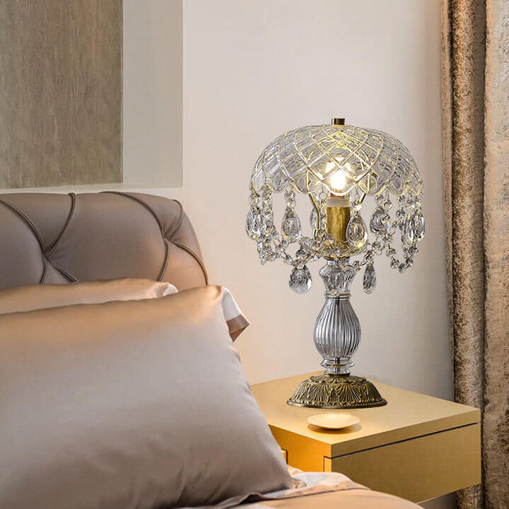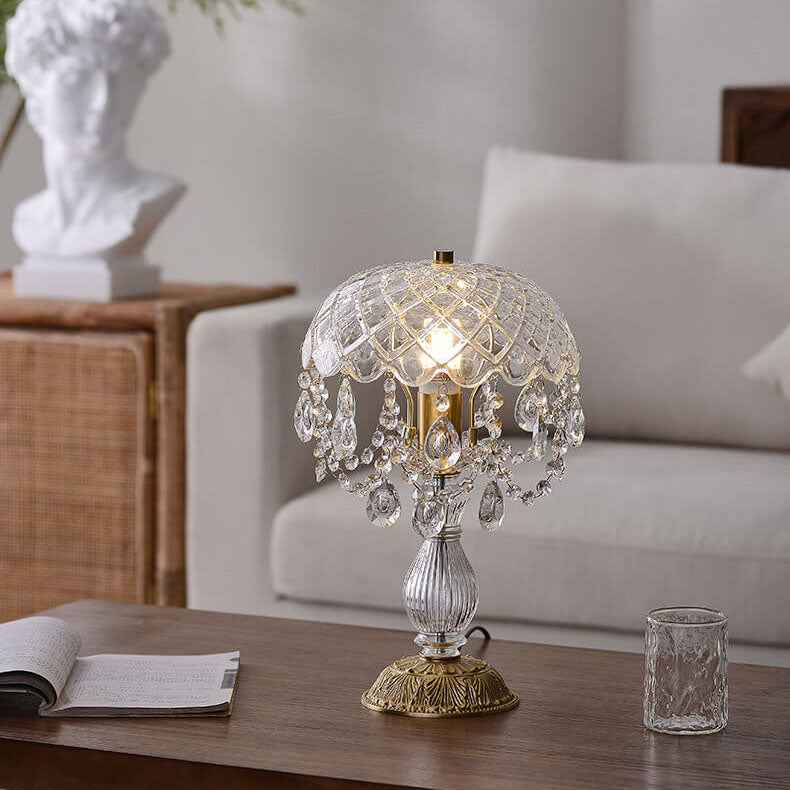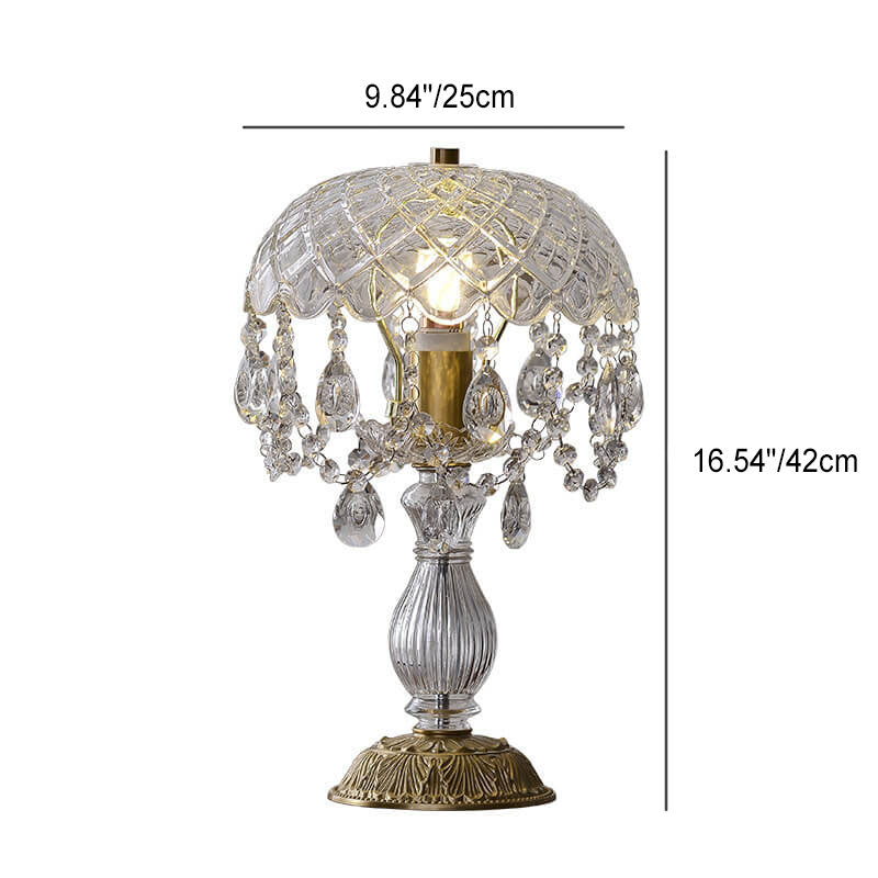 French Luxury Clear Crystal Round Tassel Copper 1-Light Table Lamp
