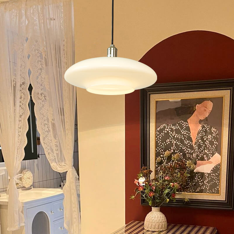 French Modern Cream Oval Glass Hardware 1-Light Pendant Light