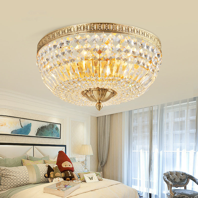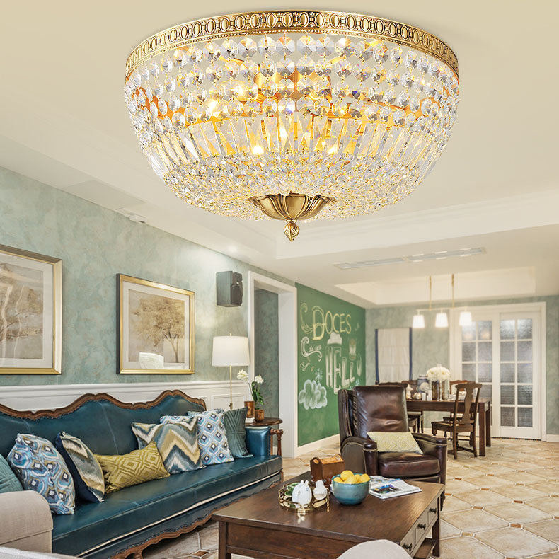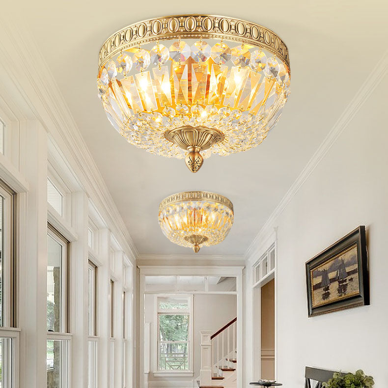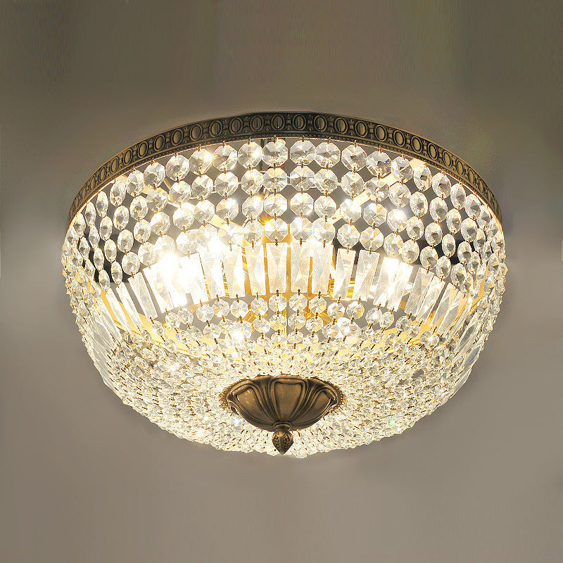 French Vintage Crystal Round 3/5/9 Light Flush Mount Ceiling Light