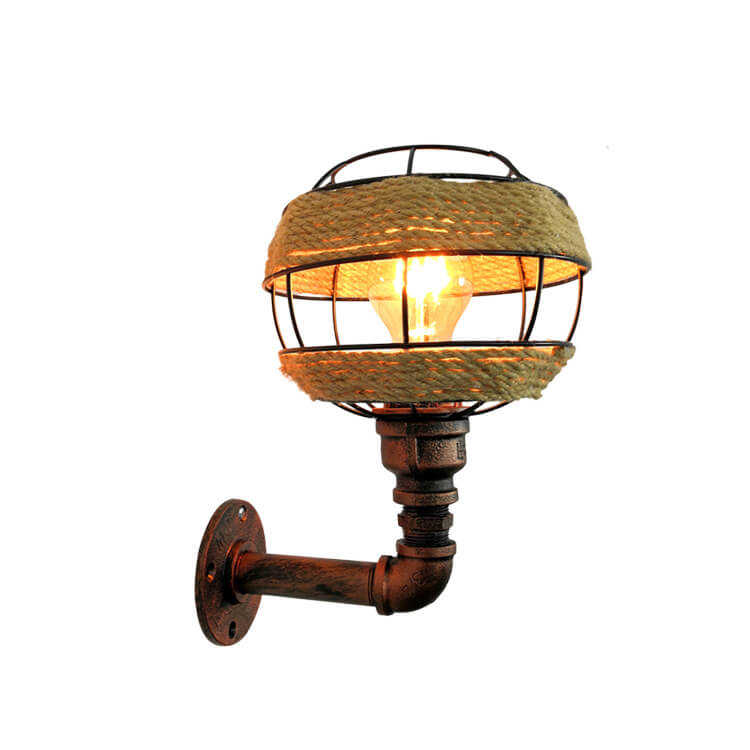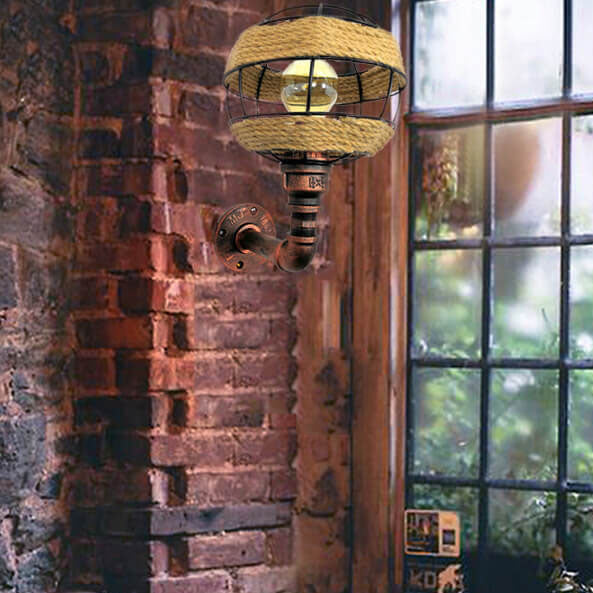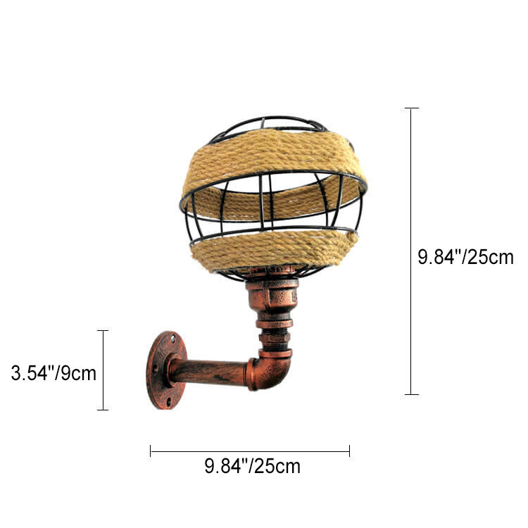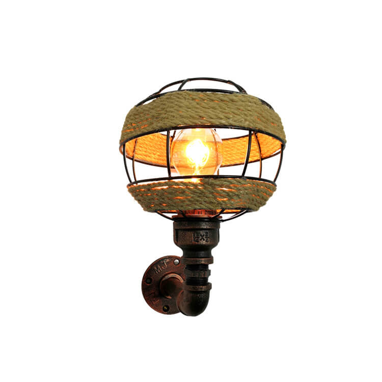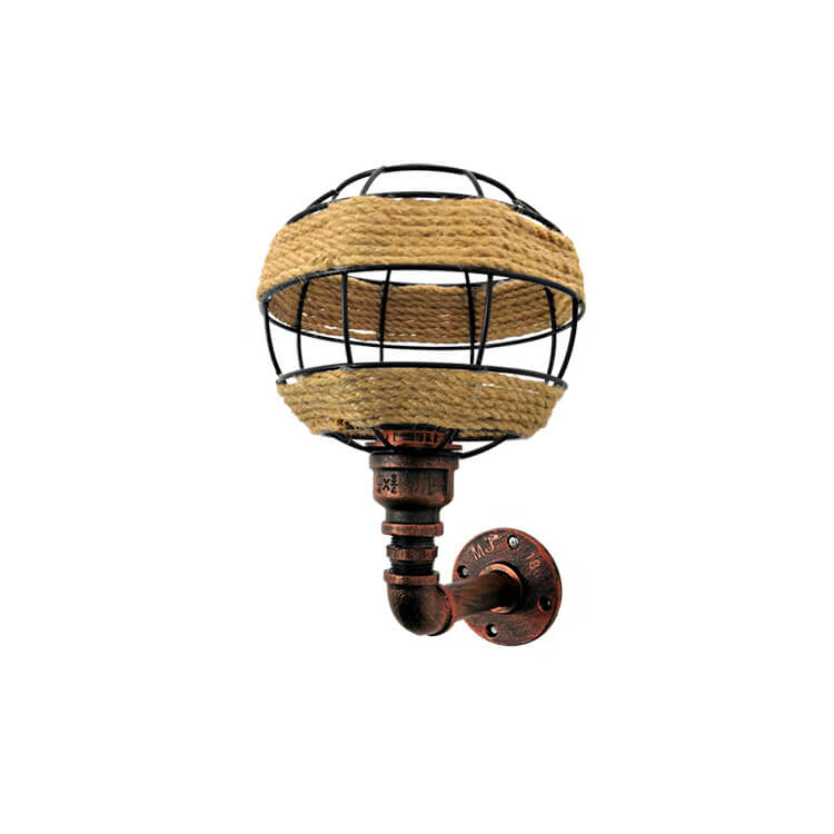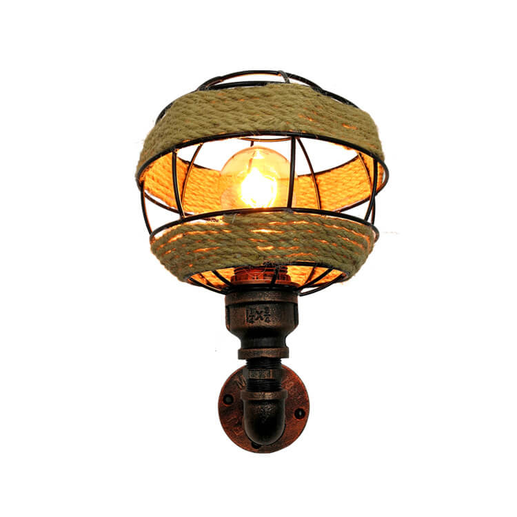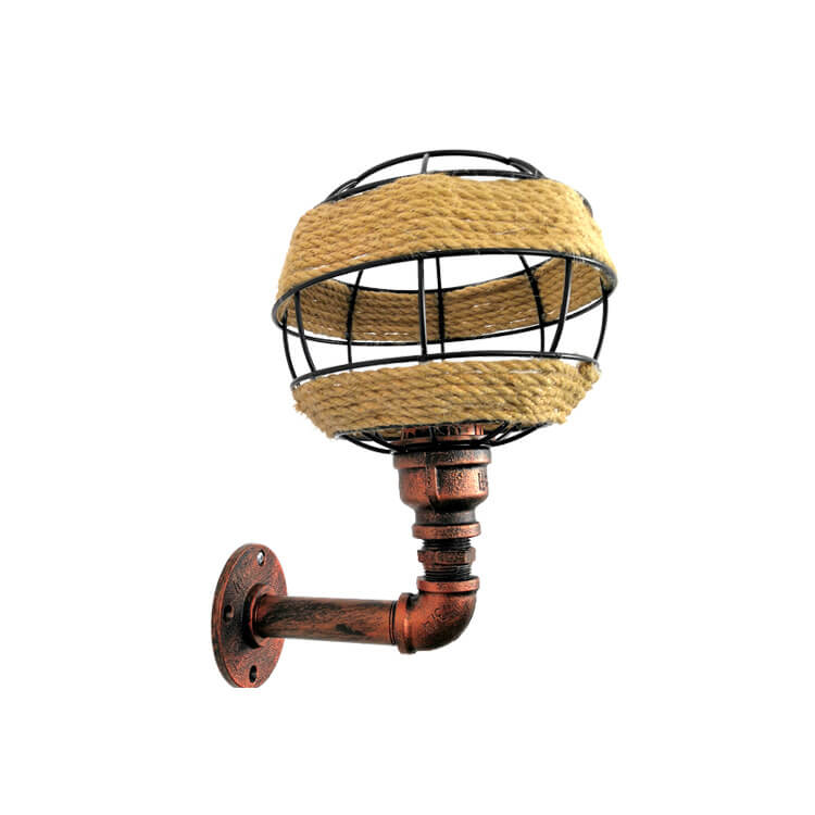 Industrial Hemp Rope Weaving Iron Sphere 1-Light Wall Sconce Lamp