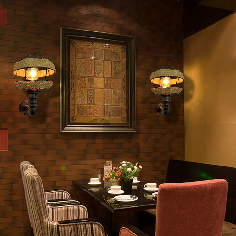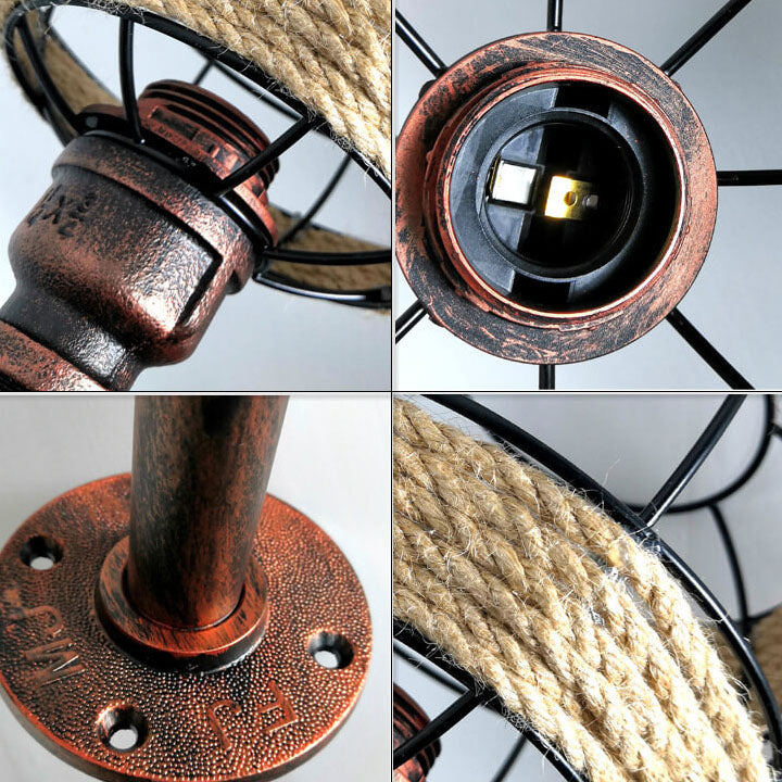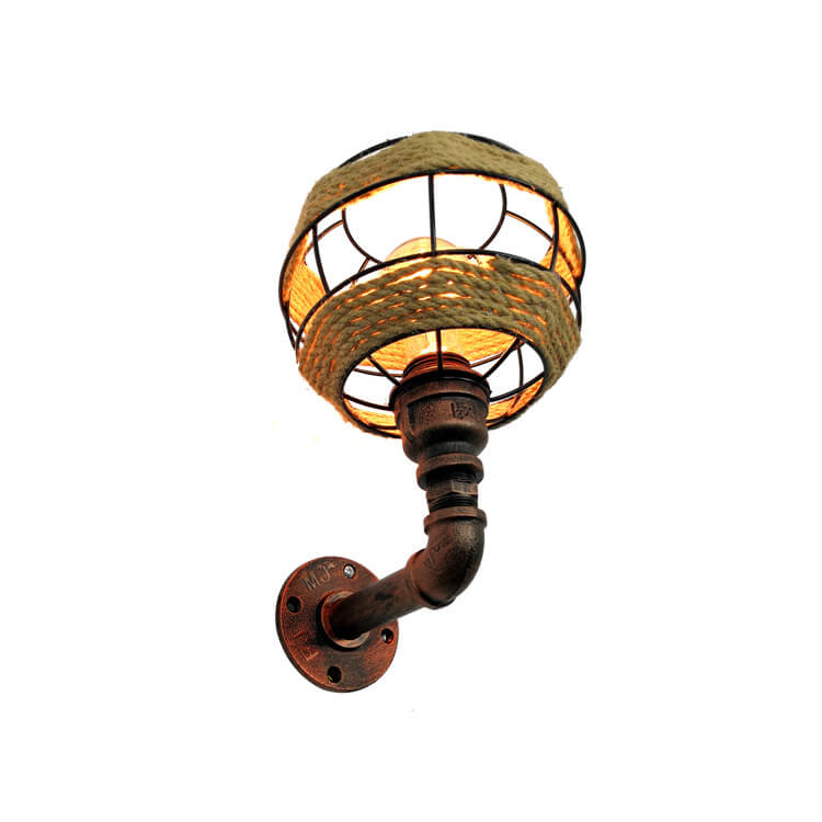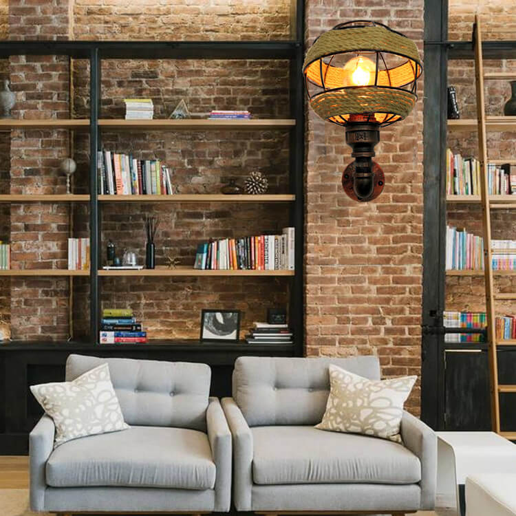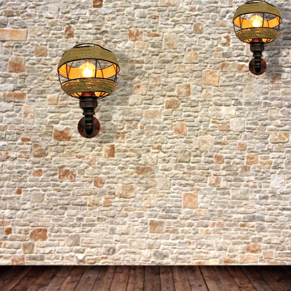 Industrial Hemp Rope Weaving Iron Sphere 1-Light Wall Sconce Lamp