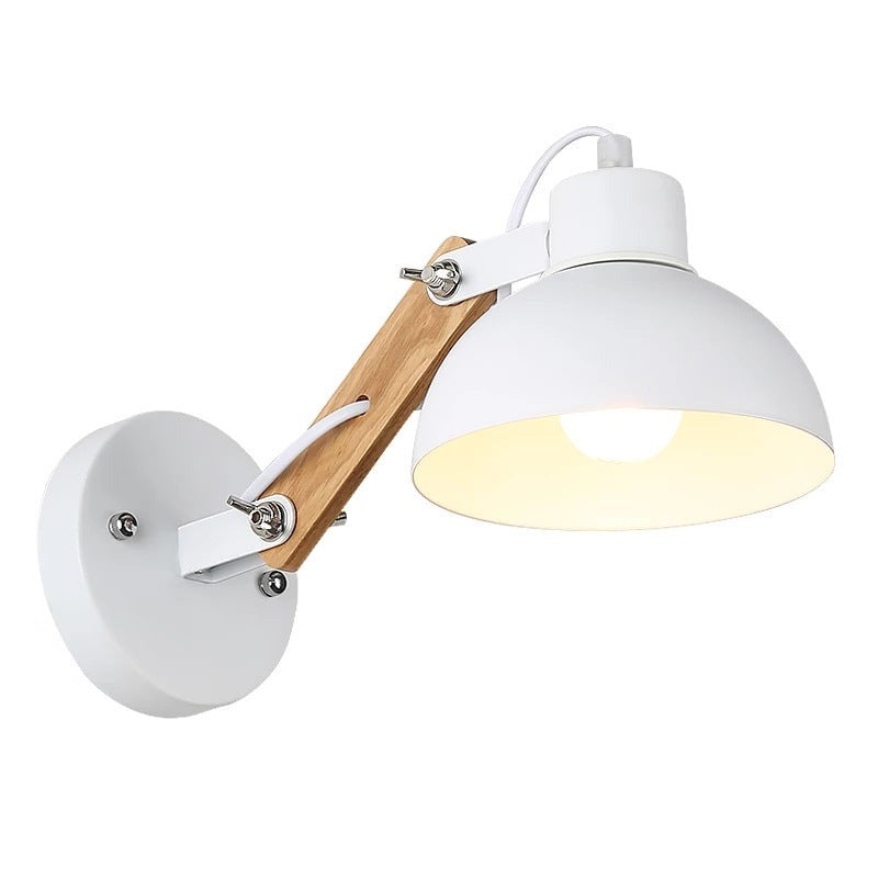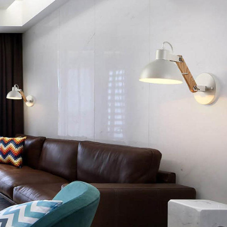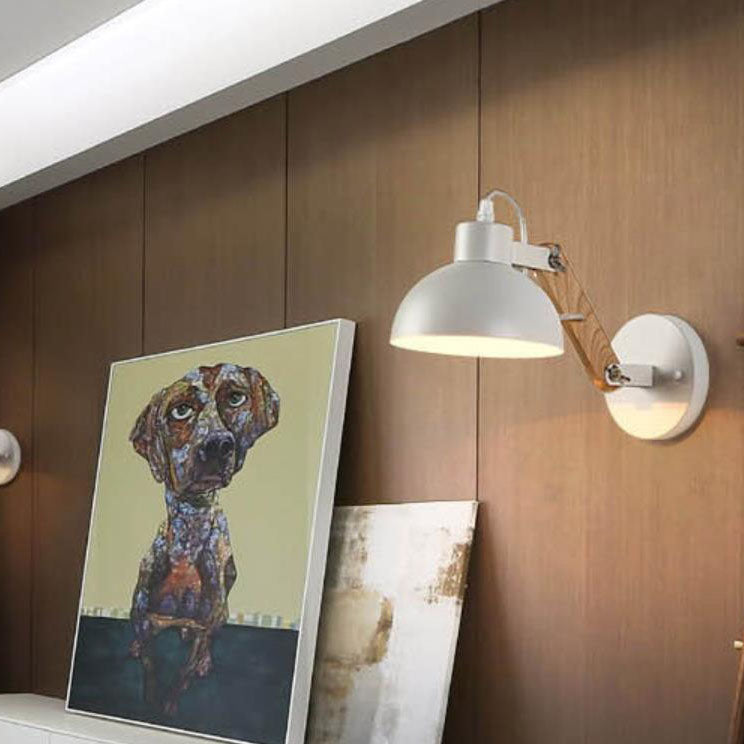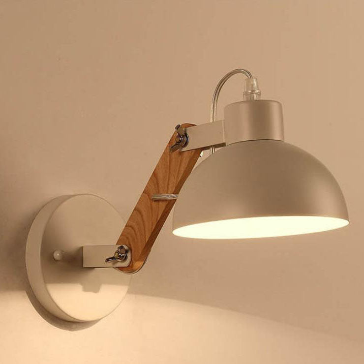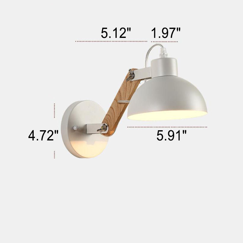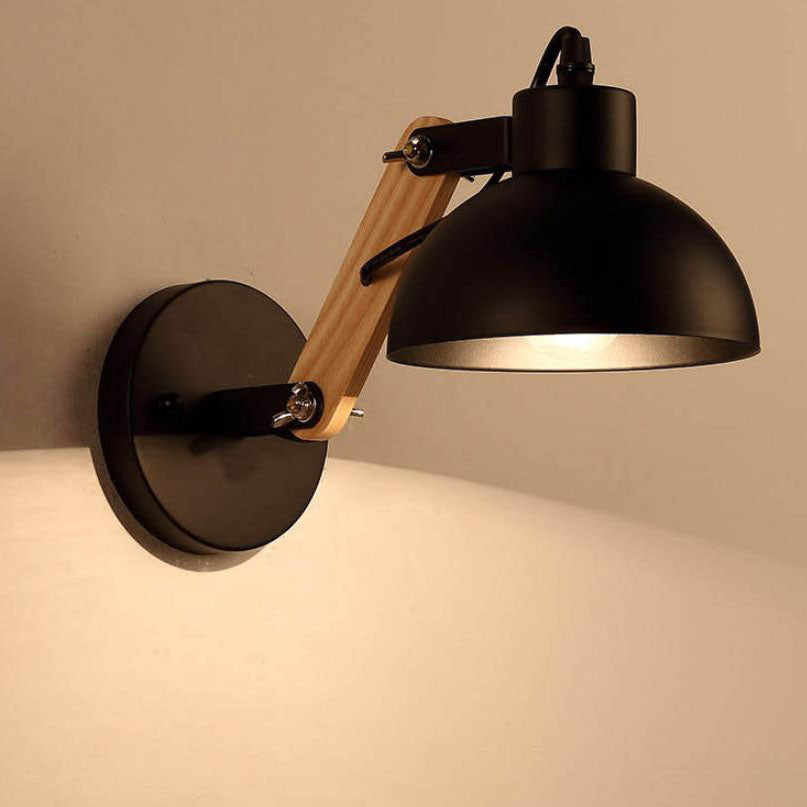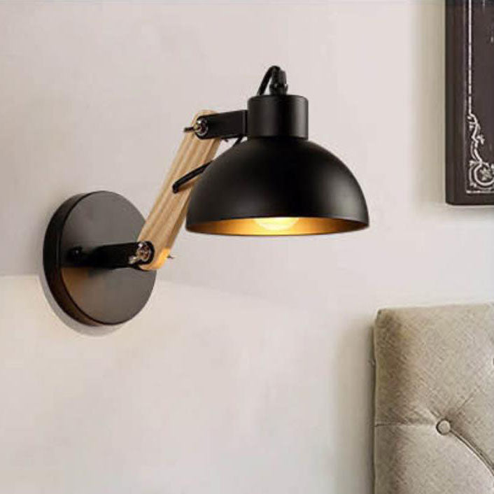 Industrial Simple Dome Retractable Wood Arm 1-Light Wall Sconce Lamp