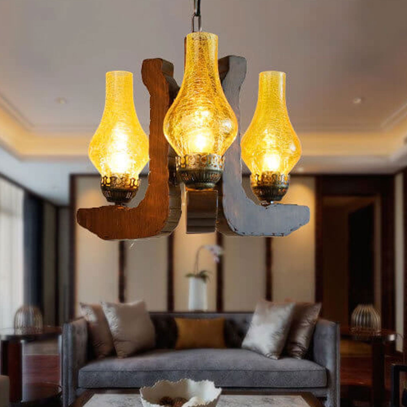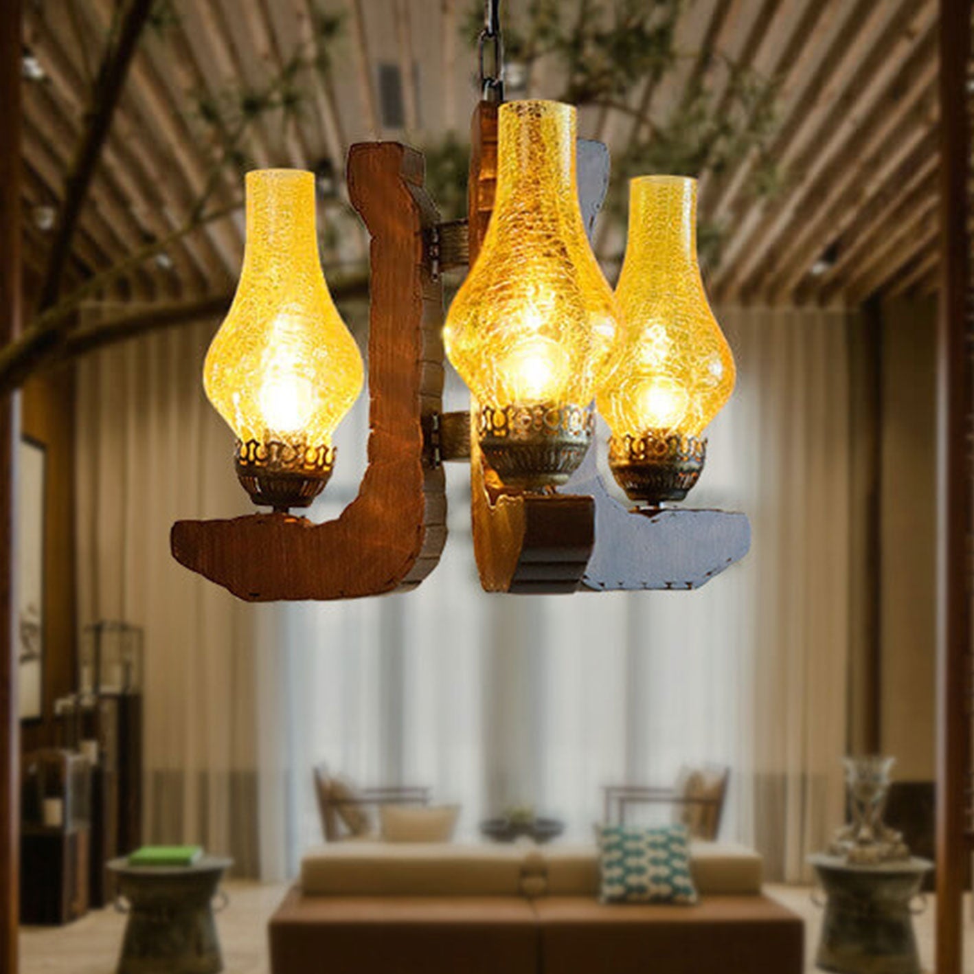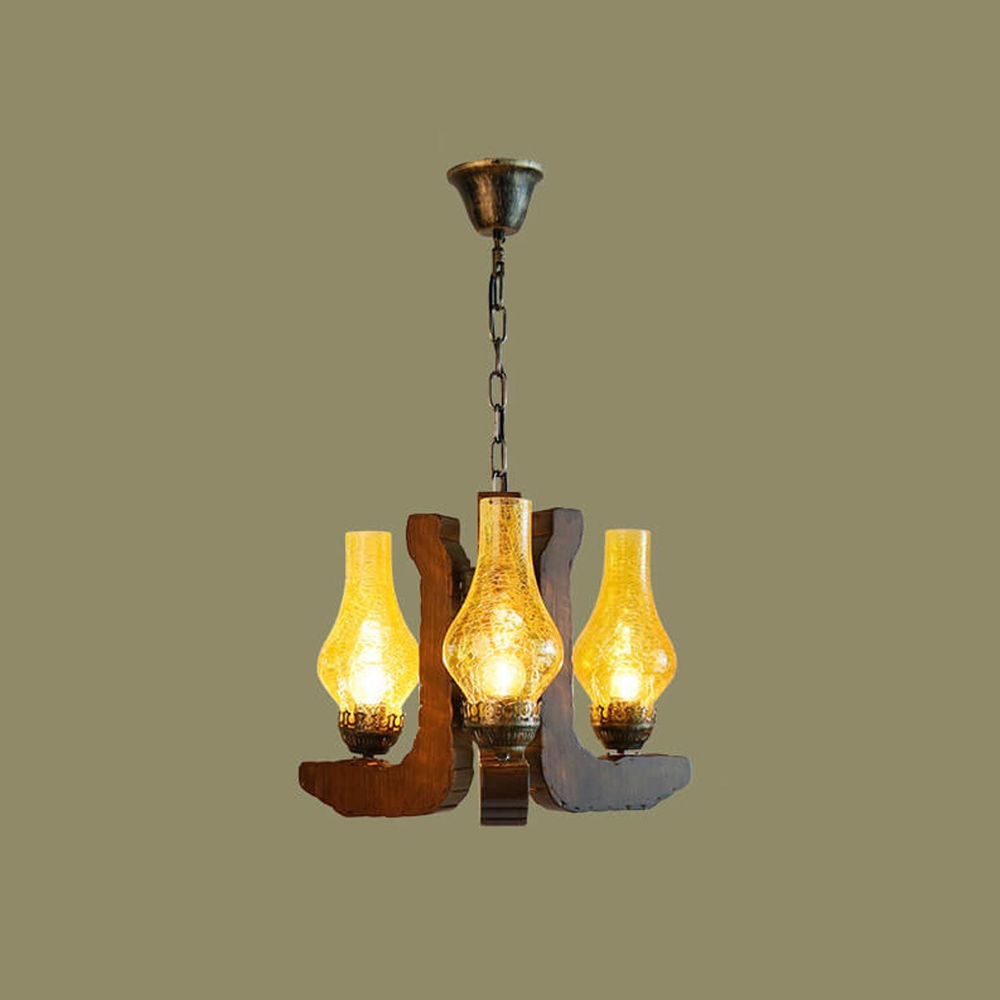 Industrial Solid Wood Antique Design 3-Light Chandelier