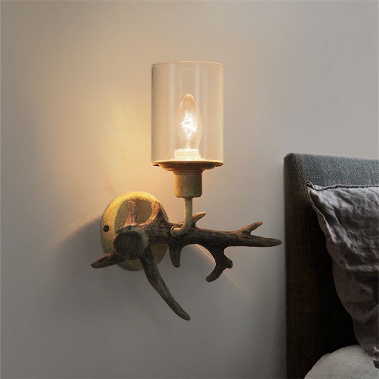 Industrial Vintage Antler Resin Glass Cylinder 1-Light Wall Sconce Lamp