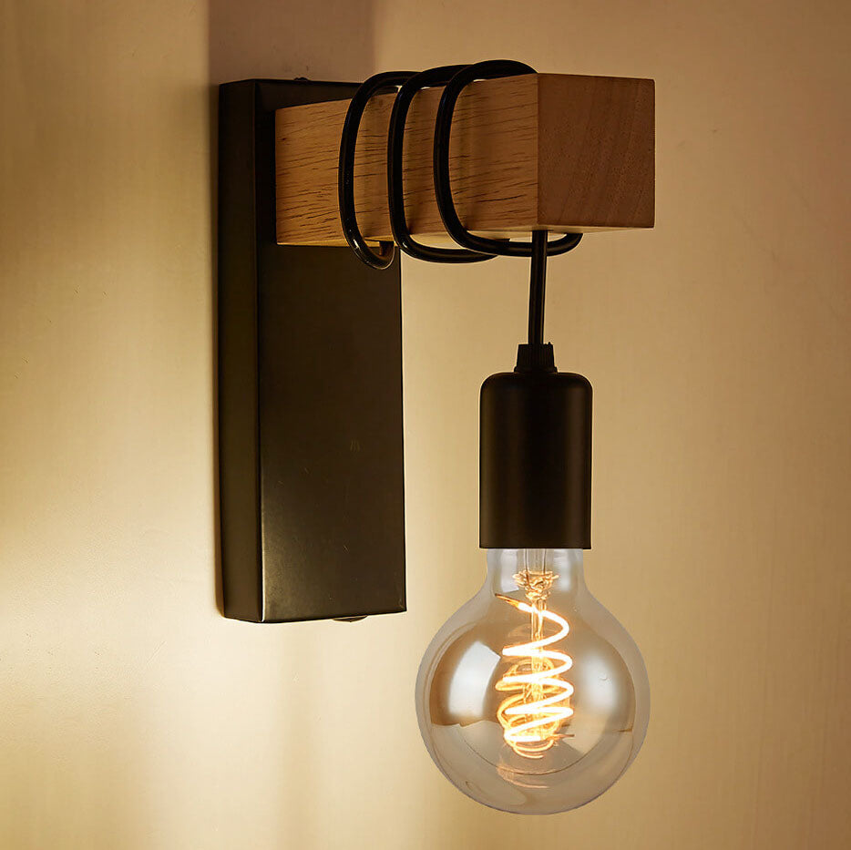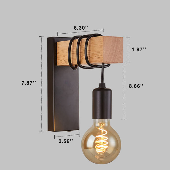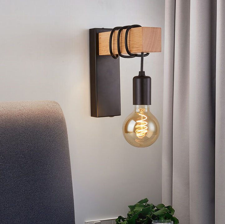 Industrial Vintage Wood Arm 1-Light Wall Sconce Lamp