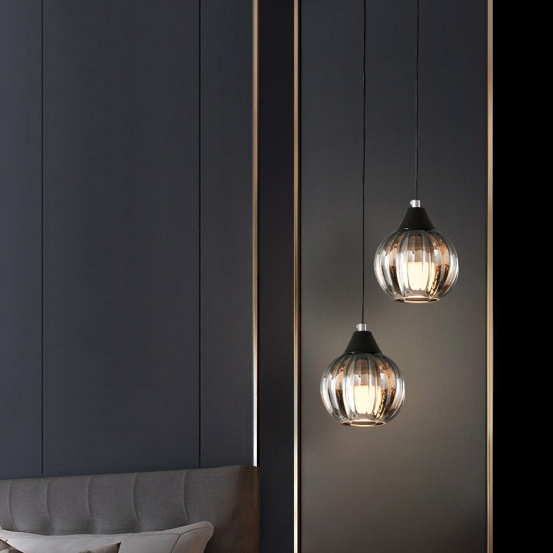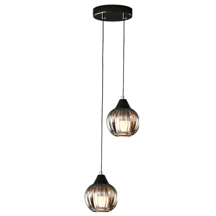 Italian Minimalist Glass Round Metal 1/2 Light Chandelier